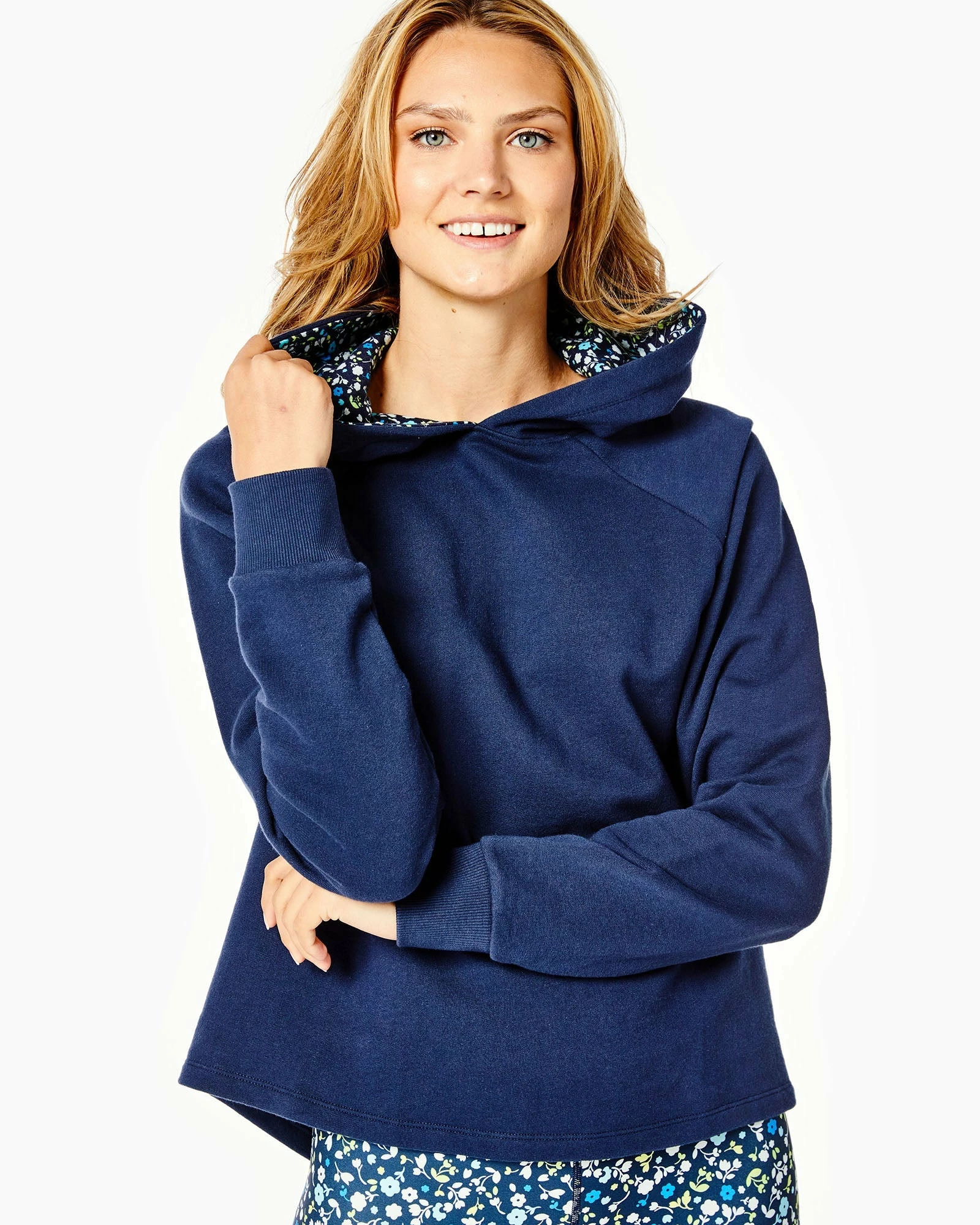 - Features a high-low hem with hood lined in a floral print fabric.