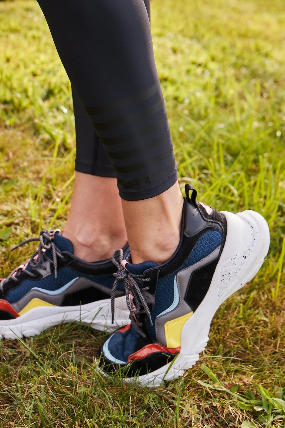 - Asymmetrical screen print stripes on wearer’s left ankle.