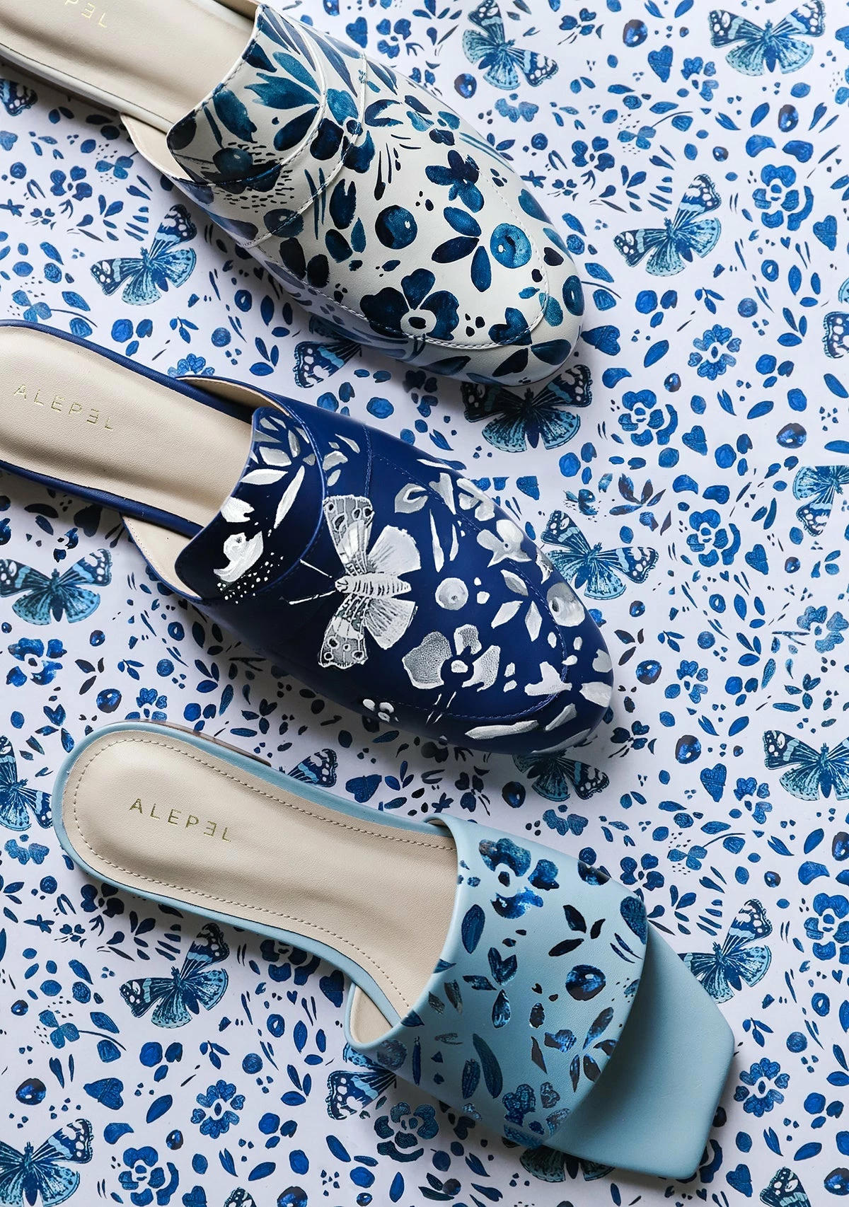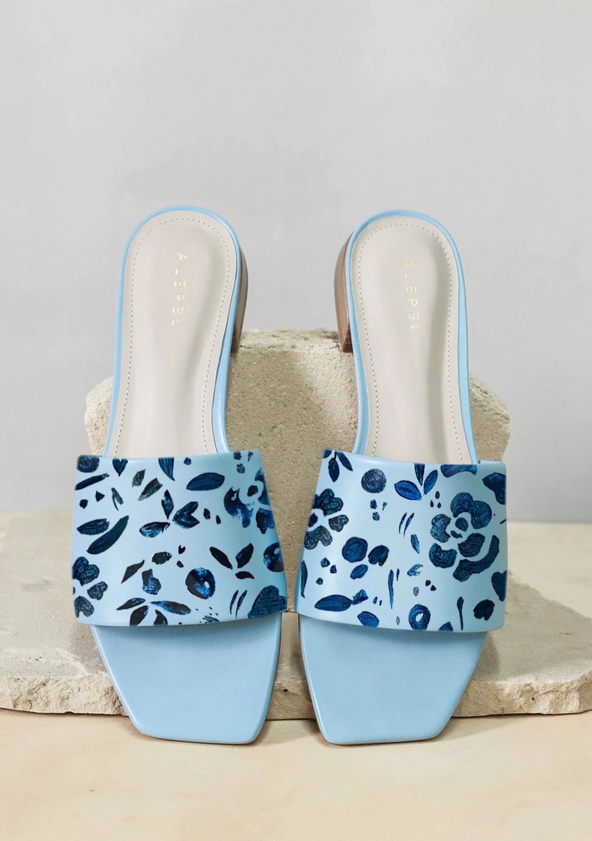 Should we be forced to pick one shoe silhouette to wear every day, it would be a slide. Slipping on and off easily and adding polish to any look, we deem them a shoe collection staple. Alepel’s designs celebrate the style in a stunning fashion with their painterly designs, all done by hand.