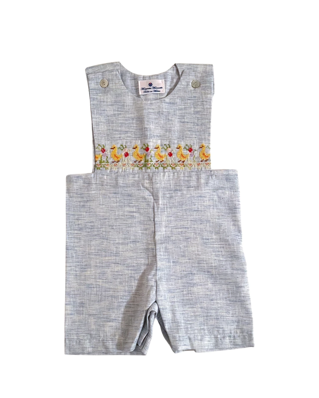 - Boys jon jon with sweet chick pattern hand-embroidered in the style of Punto de Cruz