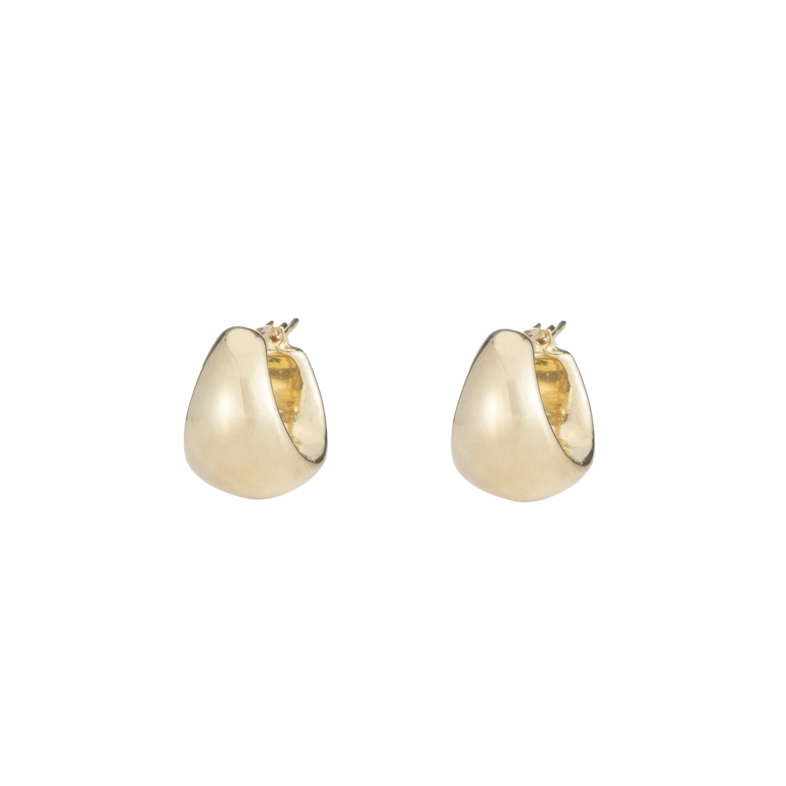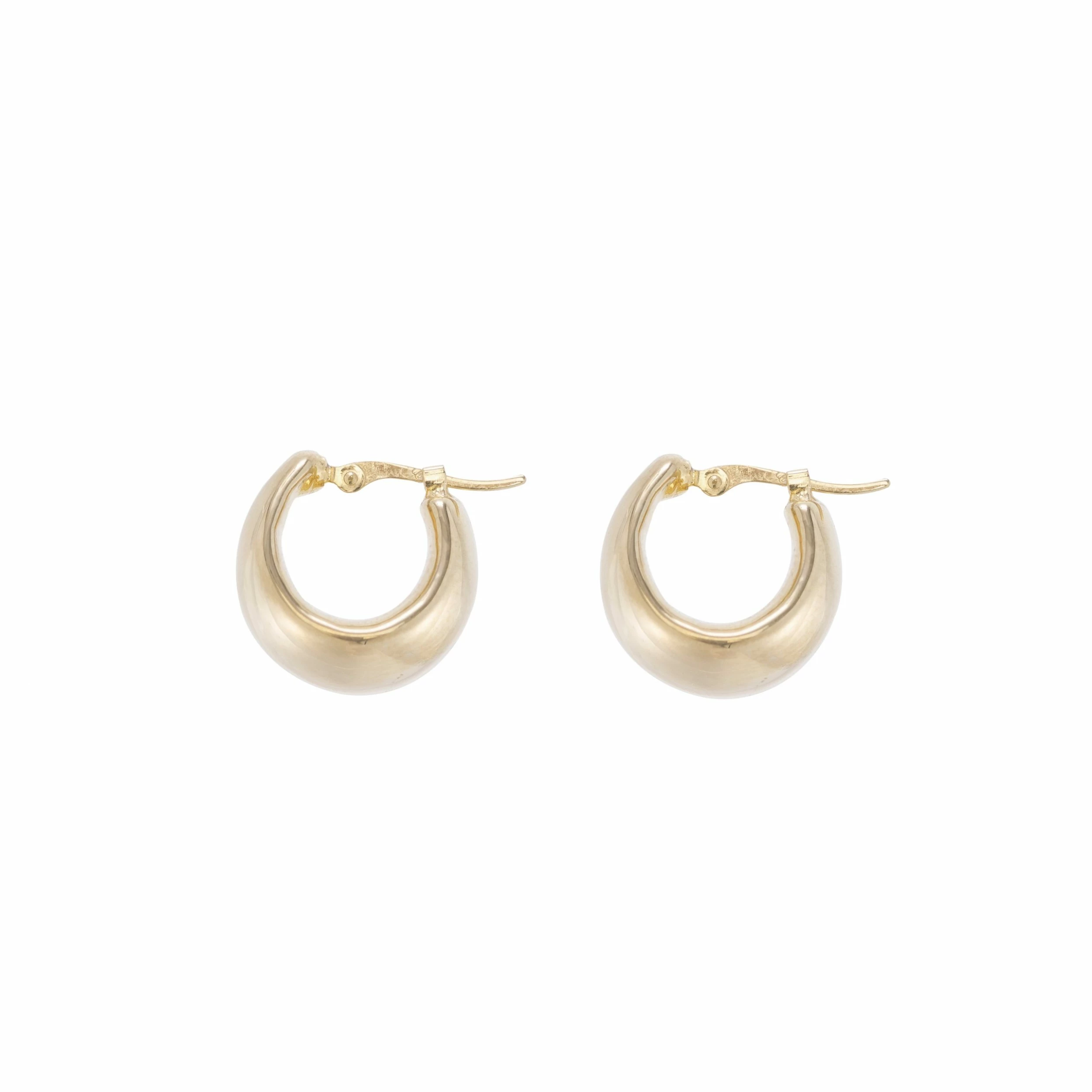 Up and away you go with our Helium Huggies. This vintage-looking pair is rendered in electroformed 14-karat gold (meaning they’re hollow and lightweight, but still super sturdy).