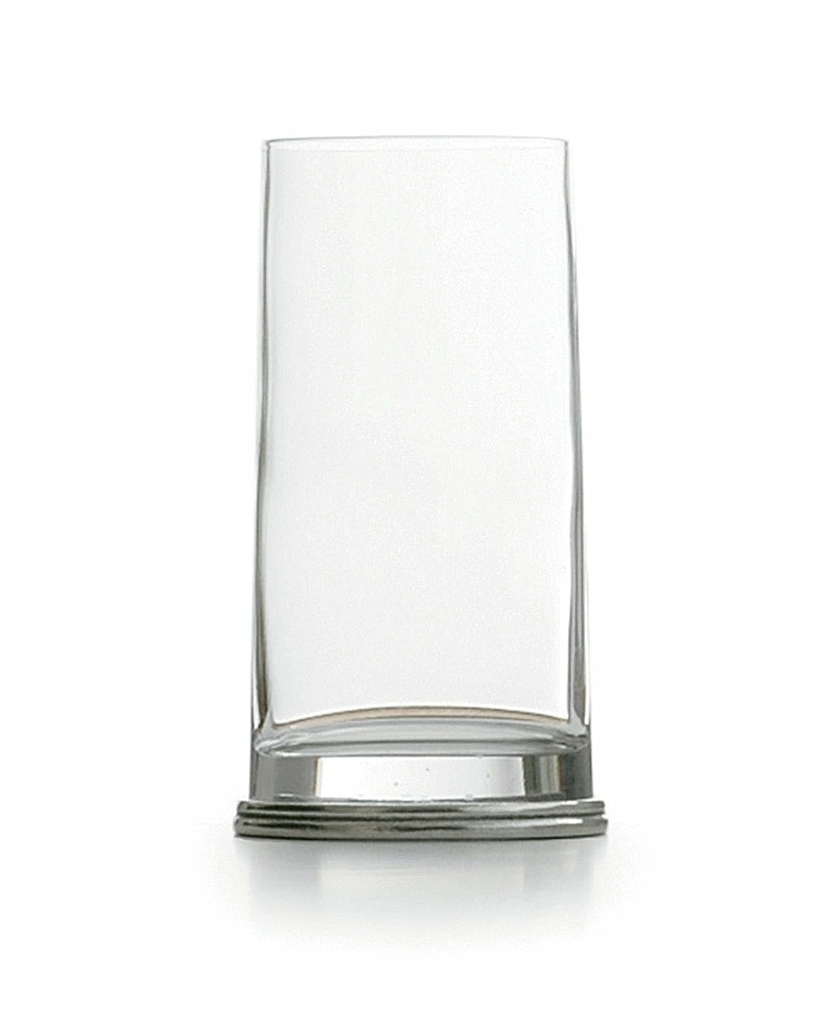 - This delightfully unusual glass combines a round glass top that flows into a unique oval pewter base.