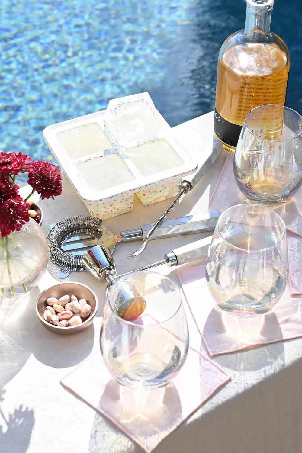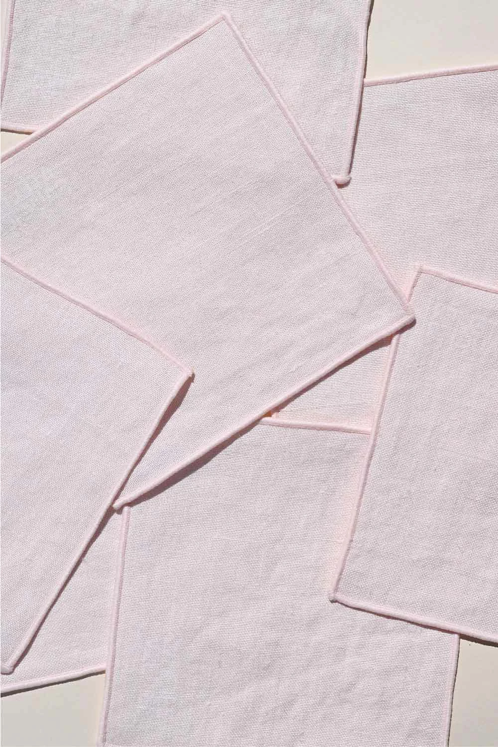 An elevated foundation or wrap for your beverage of choice, our blush linen cocktail napkins are subtly-hued, yet distinctly noticeable.
