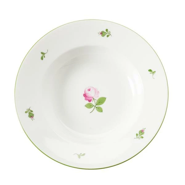 The “Viennese Rose” with a green border, framed by buds and leaf scatters, is one of the most popular motifs of the single flower series created in 1924. A simple décor, colorful , unobtrusive and elegant. Even today, the “Viennese Rose” is one of the most popular motifs and the epitome of Viennese porcelain culture at its best. The “Schubert” shape, created in 1923, is still a classic of Viennese porcelain with its classic silhouettes and discreet ornamental details.