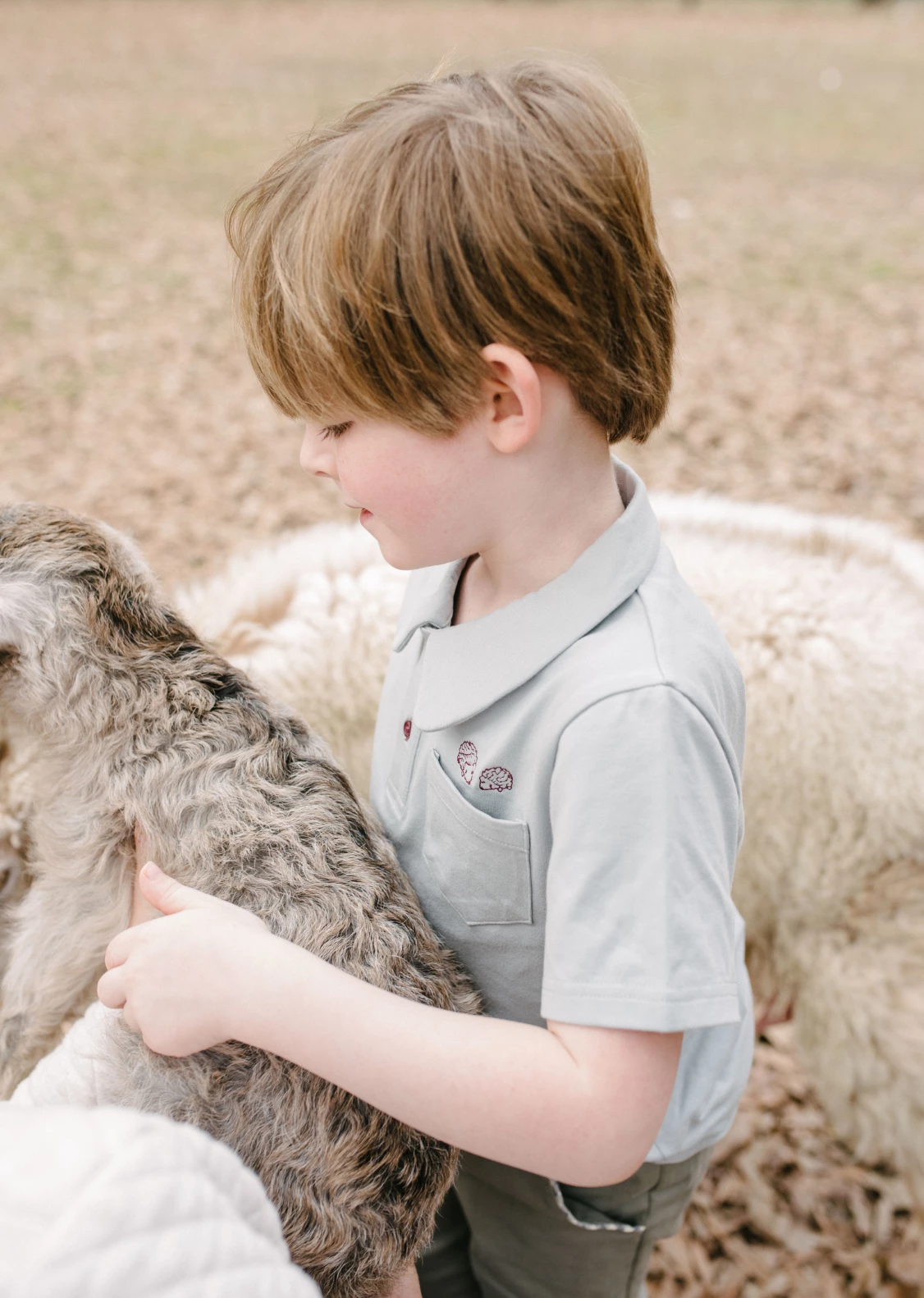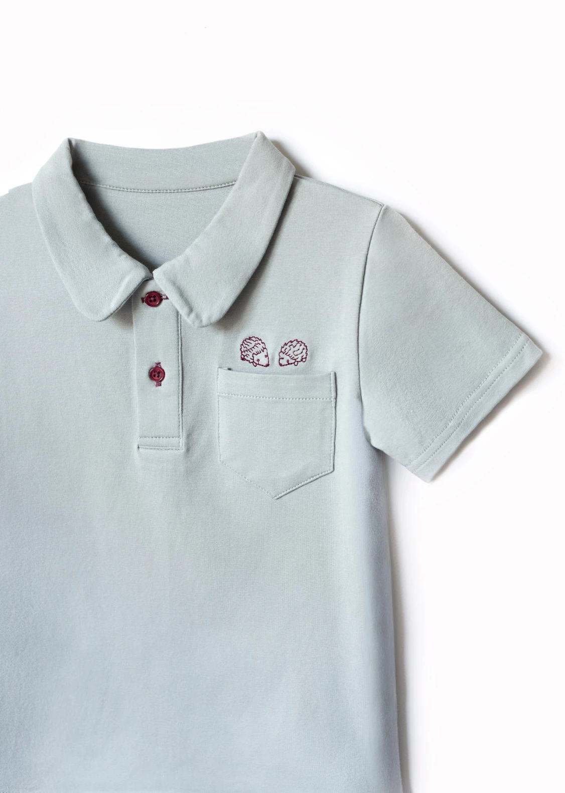 The Beau Polo is a classic style with a whimsical twist. A slightly rounded collar adds individuality while the burgundy embroidered hedgehog and colored buttons bring a youthful spirit. The perfect combination of playful and classic, the Beau Polo is a fun wardrobe staple that your boy will reach for time and time again.