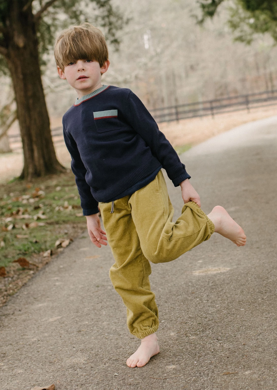 A full-on fall color in wide-wale cord makes for the best pant of the season. Perfect with a tee for outdoor and indoor play alike or dressed up with our colored shirt or knit options. Your boy will love this pant for its butterscotch hue and practical pull-on style comfort.