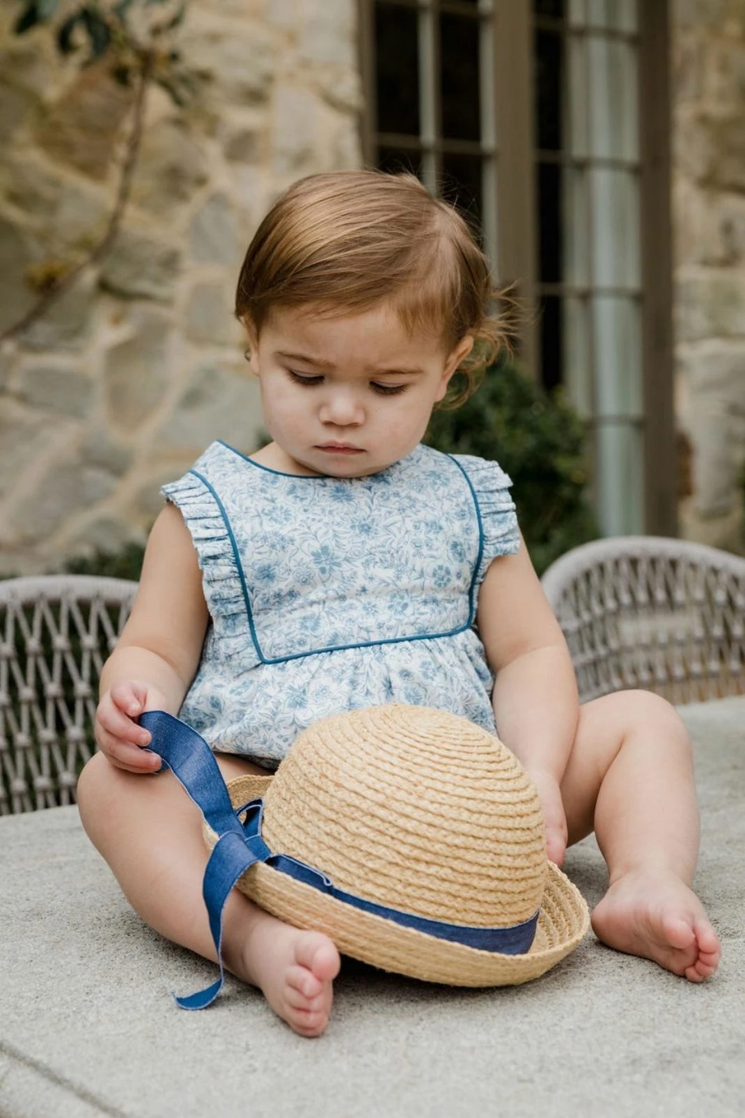 Timeless details—their vintage-inspired blue-and-white Floral Blues print, delicate ruffles sleeves, and bright royal-blue contrast piping—make the Elizabeth Playsuit an enduring Baybala favorite. With adjustable straps that allow this throwback silhouette to grow with your little one, the one-and-done look is as comfortable as it is cute thanks to elastic at the legs and back as well as the soft cotton voile fabric. Bonus: Button-covered snaps allow for easy on-and-off.