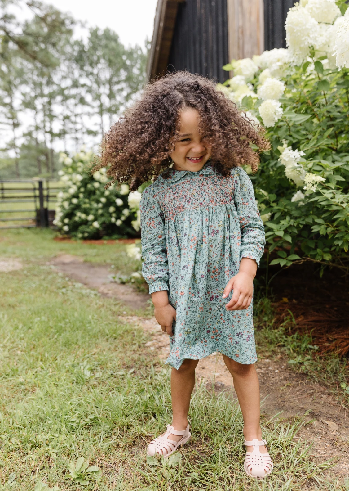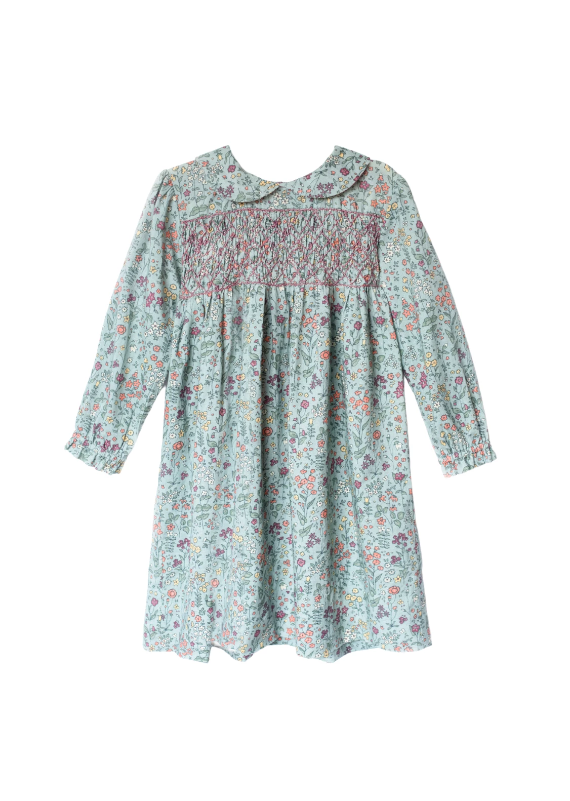 From the peter pan collar to the coral pink smocked bodice, this swing dress leans on tradition while embracing a modern lightheartedness. Made from 100% cotton voile in their Wildflower print, and designed with thoughtful details like button-covered snaps and elastic at the wrists, the Clara Dress is a long-sleeve spin on one of the best-selling silhouettes.