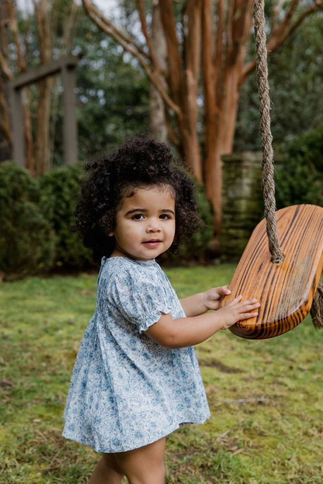 Made from 100% cotton voile, the Lottie Top, which comes in their new blue-and-white Floral Blues print, is ready for the increased outdoor playtime warm-weather brings. The swingy silhouette marries form and function with button covered snaps and delicate design details like pretty puffed sleeves and tiny pintucks across the bodice. For a classic look, throw it on with their matching Lulu Bloomer.