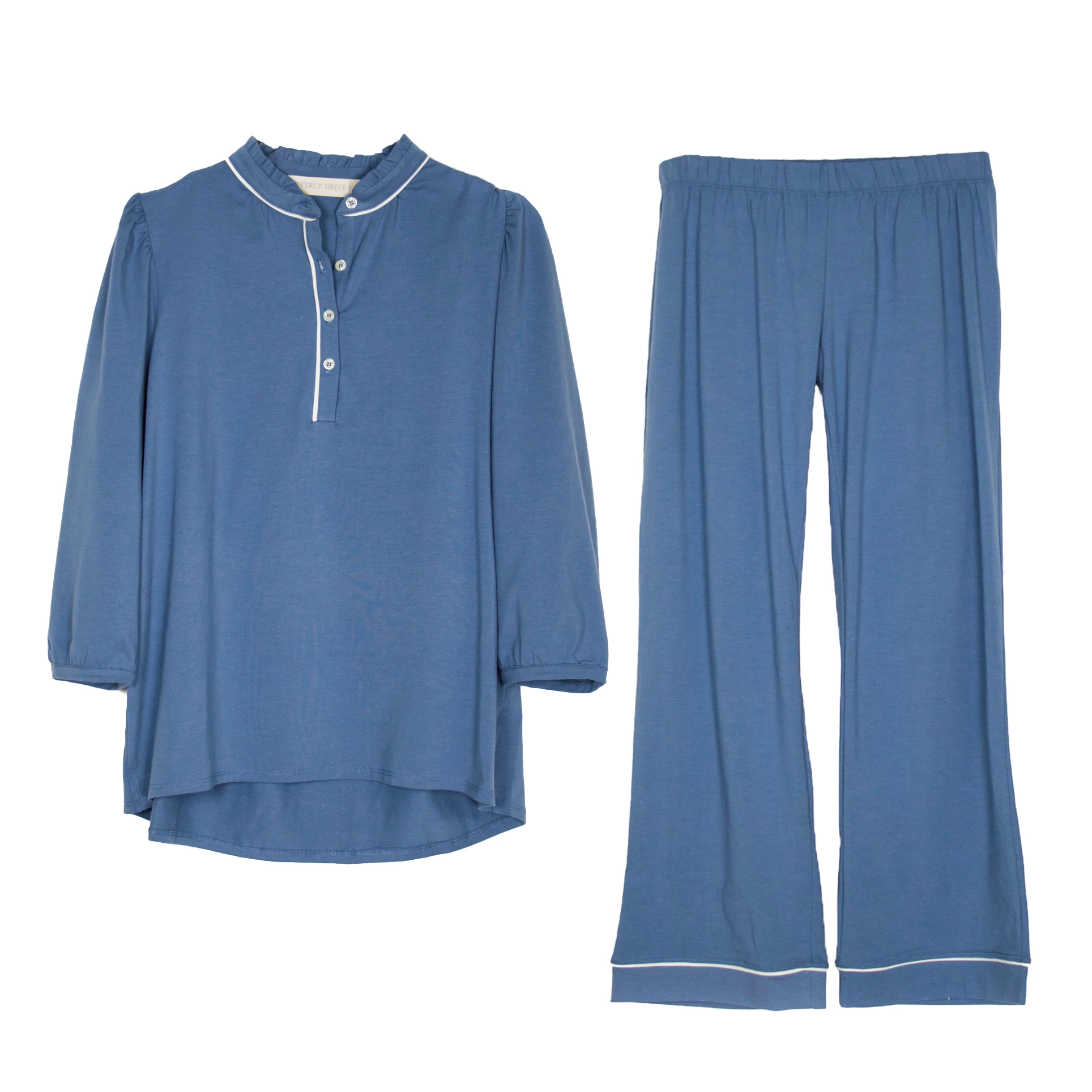 We reimagined the standard menswear sleep set and added feminine details to create a gorgeous silhouette. Our luxurious, temperature-controlled fabric is made from organic cotton and is incredibly soft for a beautiful night’s rest. Our cotton blend has also earned the prestigious OEKO-TEX 100® certification which means it has been independently tested and is free from harmful substances.