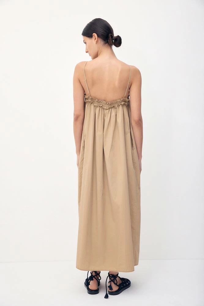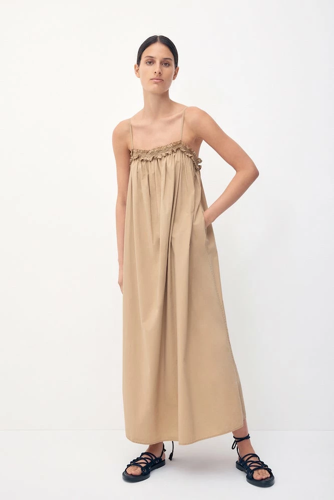 The Ida maxi is a timeless silhouette injected with bird & knoll’s feminine and modern twist. Crafted in crisp cotton poplin fabrication in perfect summer hues, this effortlessly cool easy wear maxi features adjustable straps for a personalized fit, delicate ruffle and shirring detailing and side seam pockets. A wardrobe staple that you will wear over and over, perfect for balmy days at home and the ideal sundress for tropical vacations.