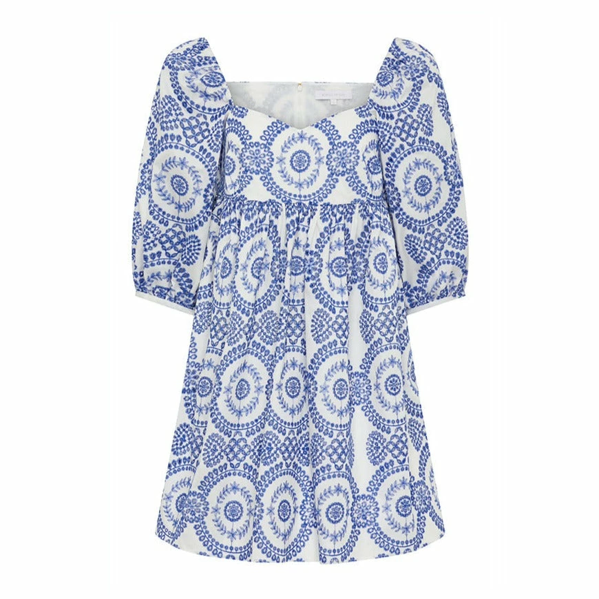 - Blue Broderie Anglaise on white cotton base