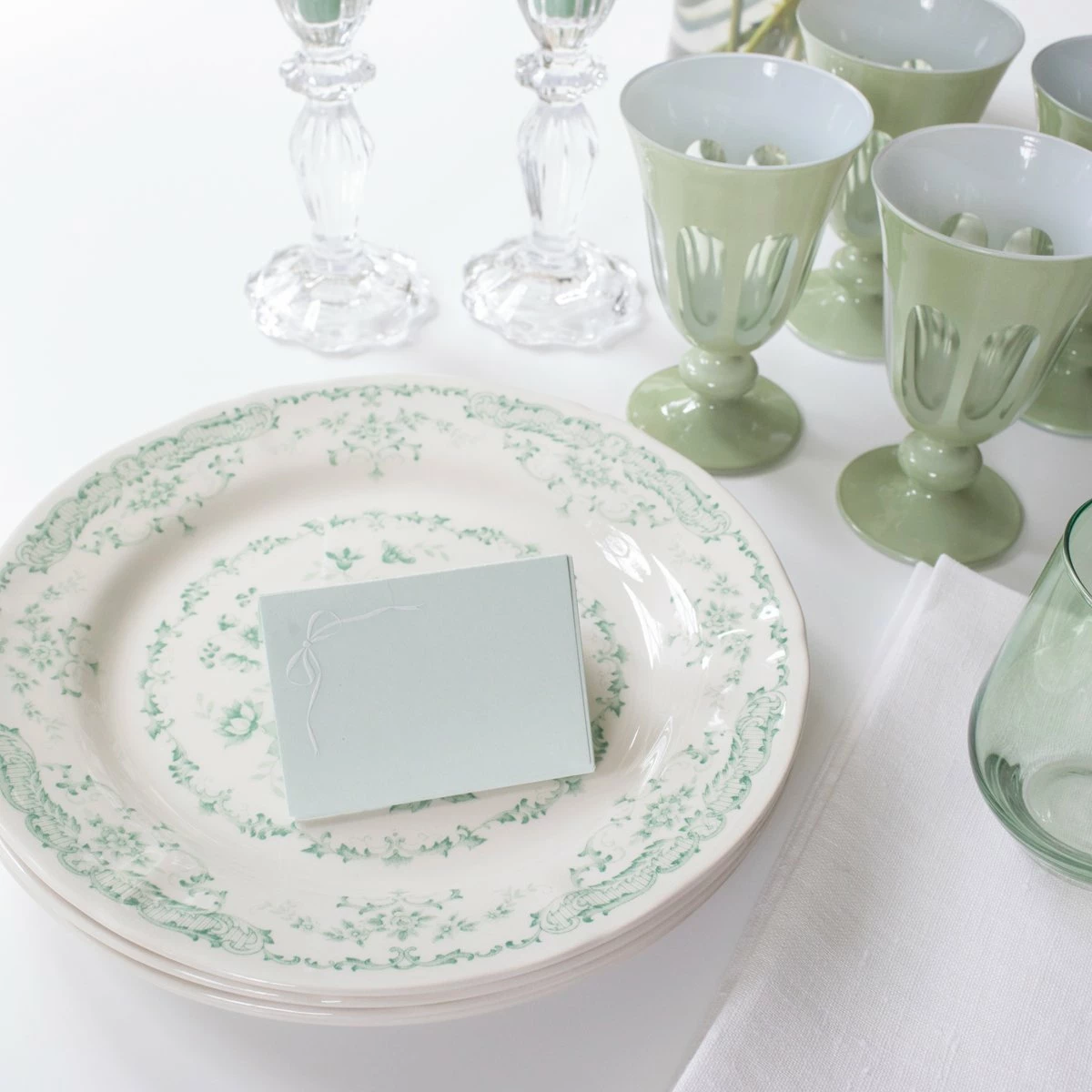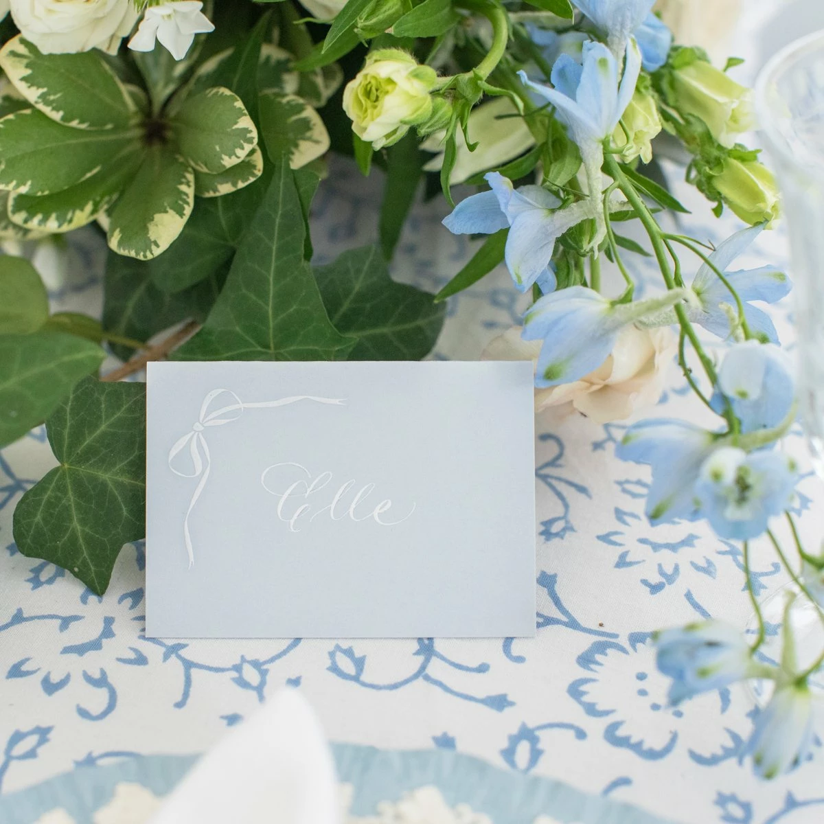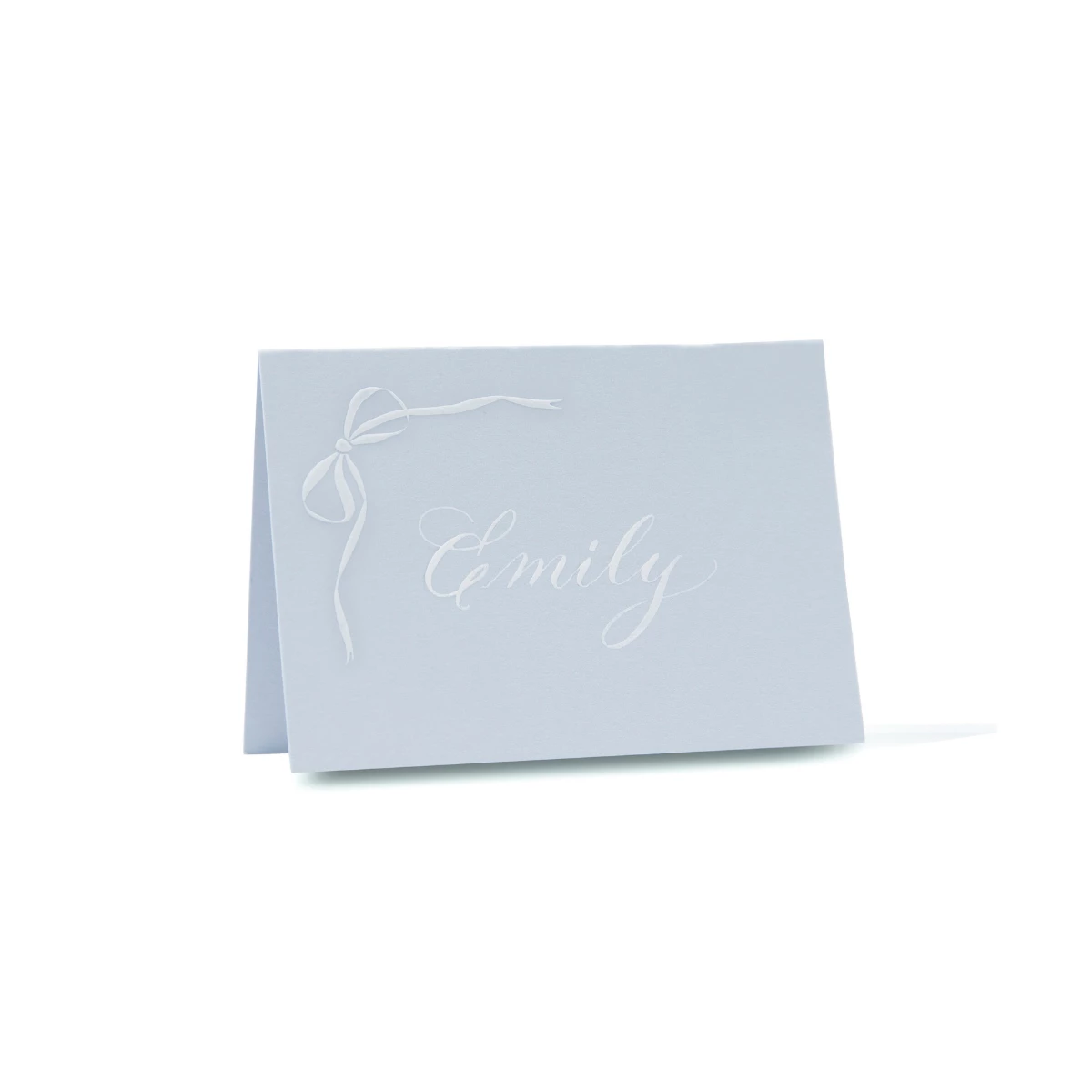 Bows & Blue coincides with the arrival of Emily’s son, Jennings. After realizing her curation of beautifully layered grand millennial homes was gaining steam, the concept of a curated shop full of inspired finds was born. Hertz currently resides in Atlanta with her husband, two children, and cavalier, Birdie. Set of 10 tented place cards. The bow is engraved with raised white ink on blue or green paper. Darling for a dinner party or a wonderful hostess gift.