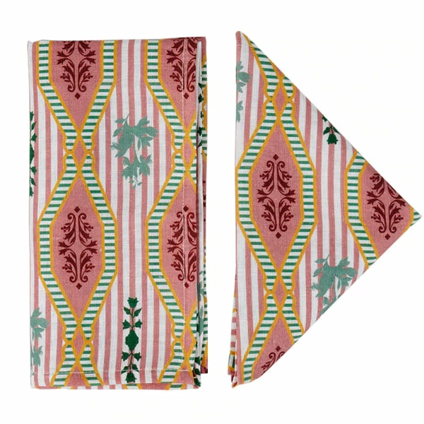 Equally elegant and playful, these Rosa napkins features a honeycomb and striped pattern woven in a linen jacquard. Its geometric pattern draws inspiration from arabesque design and is fit for all occasions, whether a formal dinner or a whimsical weekend luncheon.