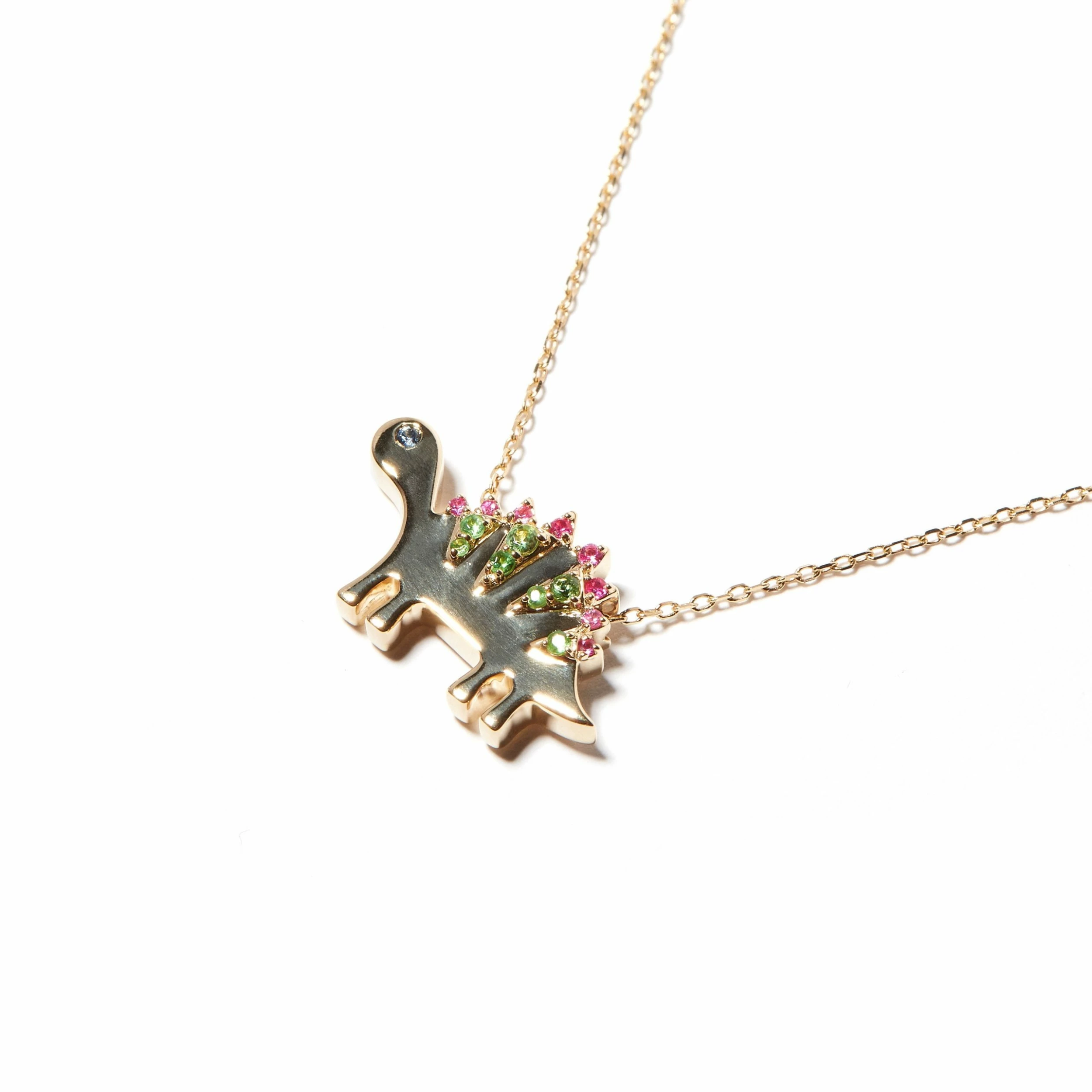 - 14k gold with pink & blue sapphires, tsavorite.