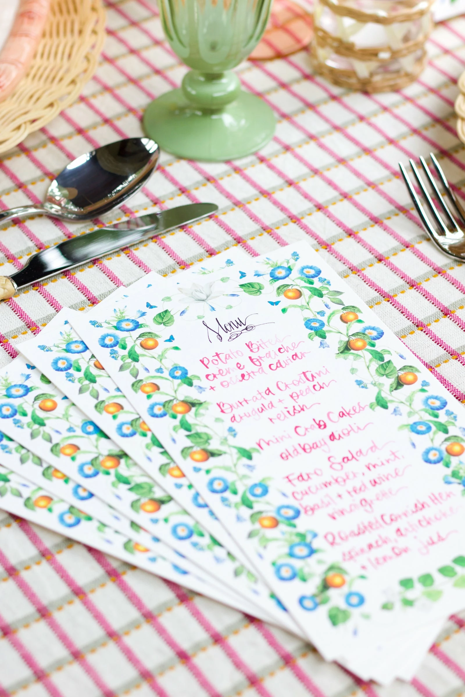 Each order includes a set of ten 9”H x 5”W menus crafted on the softest 100% cotton paper.