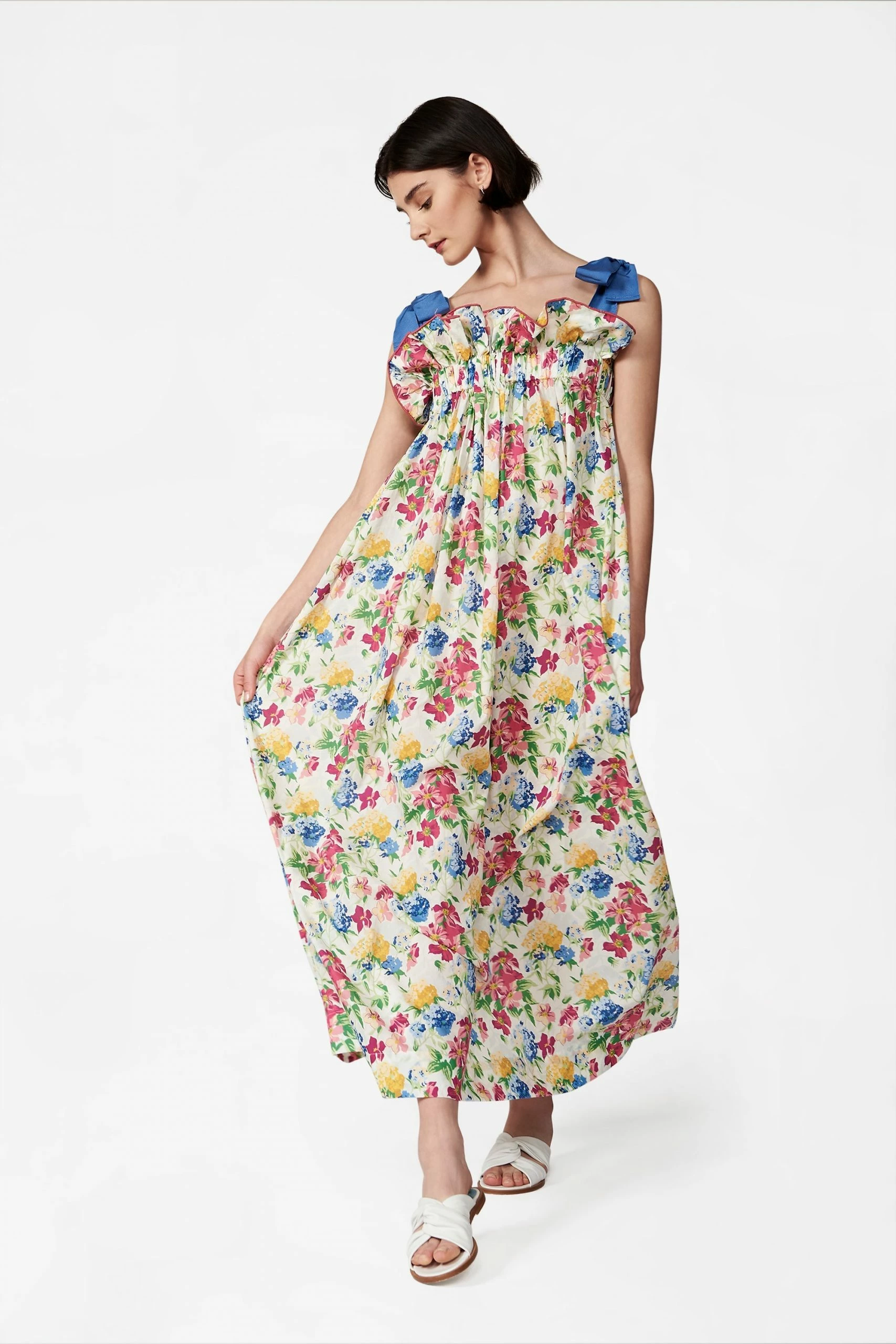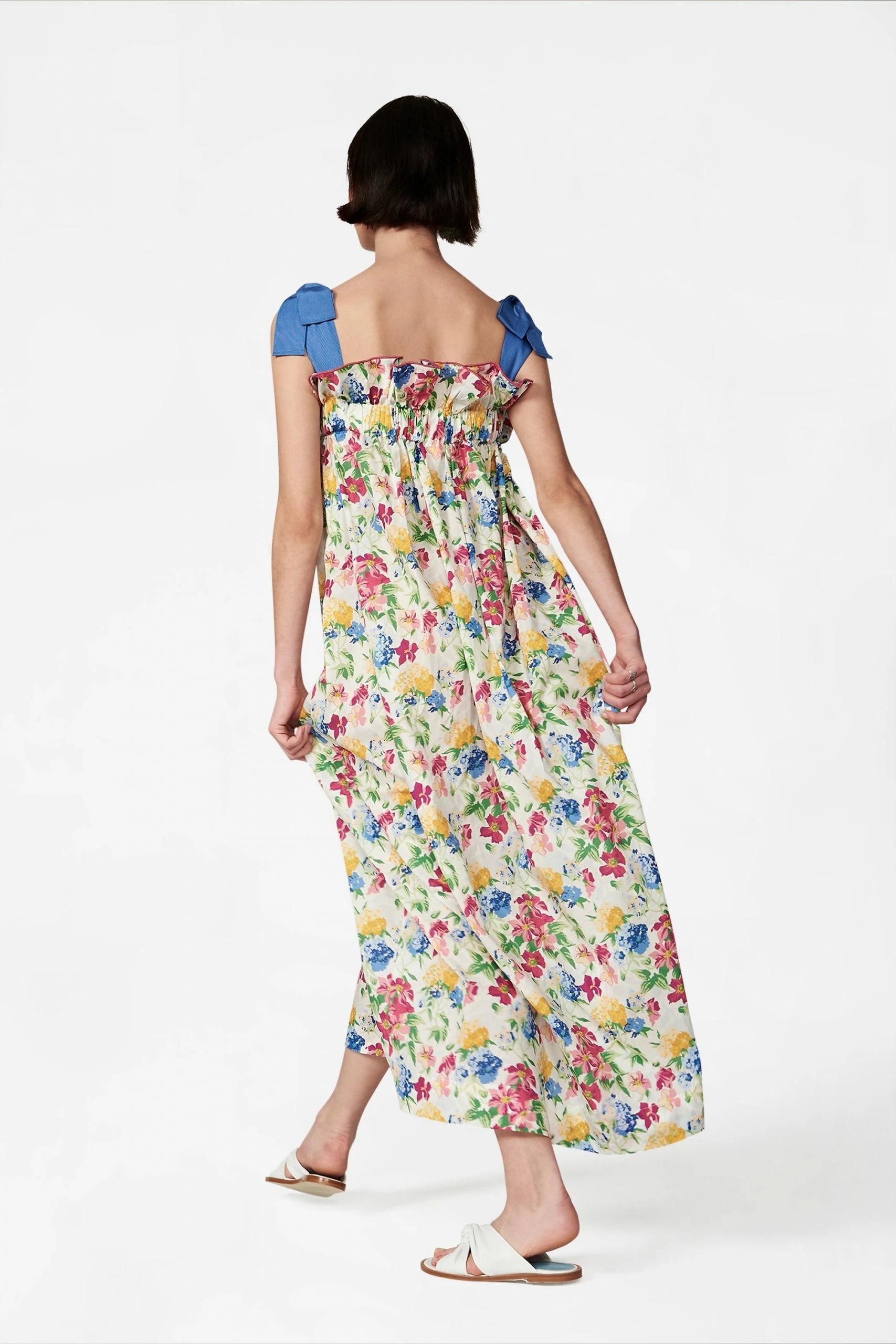 Free-flowing and feminine, their top-selling Jaime dress will fast become your favorite frock. Luxurious, lightweight cotton from Liberty Fabrics, grosgrain straps, and embroidered piping, make it ethereal and elegant—a dress you’ll want to wear day and night.