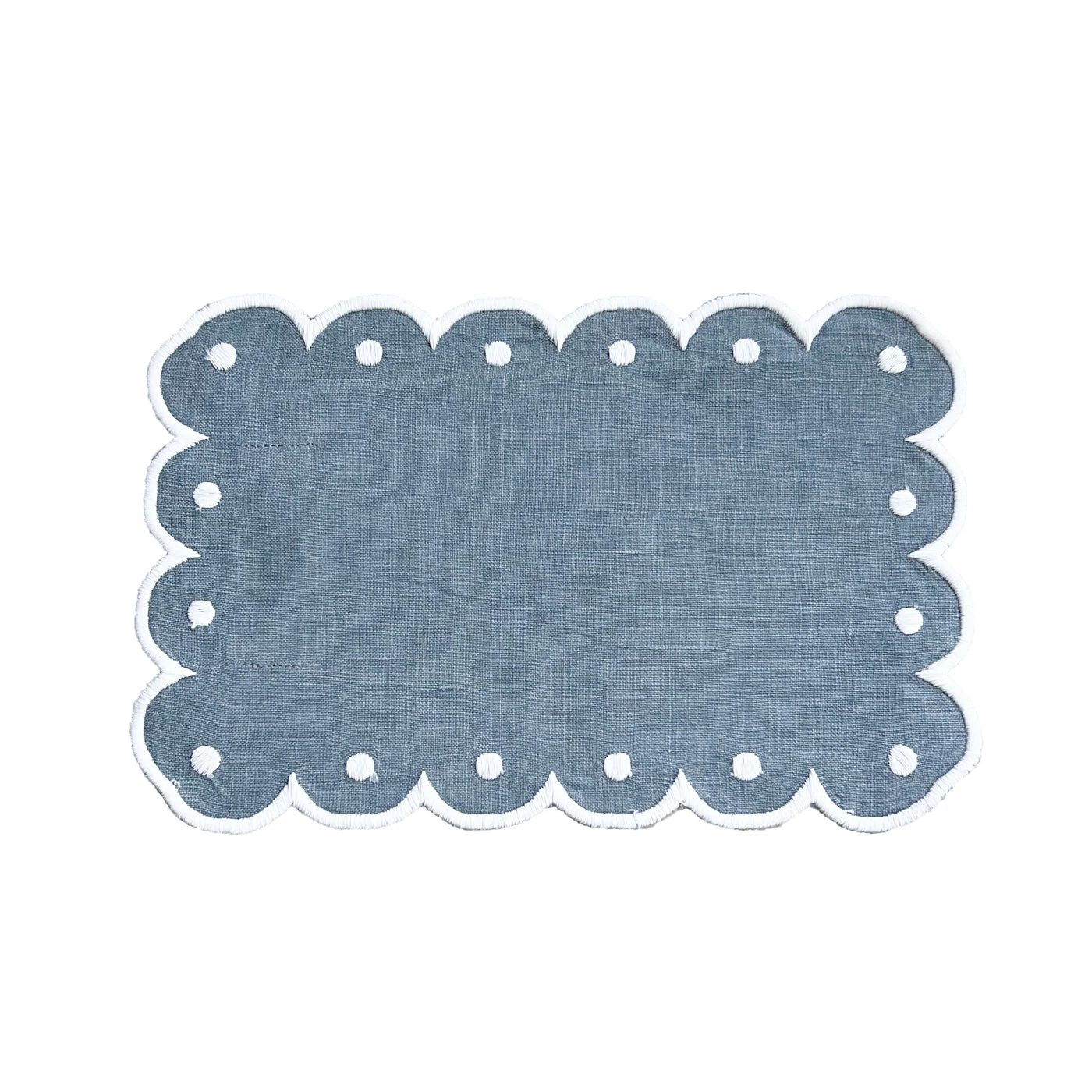 CeCe Barfield Thompson is known in the design world for her ability to integrate old, new, inherited, and found pieces creating a fresh and layered style. The CeCe Barfield Home Collection is a range of au courant tabletop pieces rooted in traditional design and hospitality. Inspired by a pair of 19th century Paris porcelain vases. The table linens are produced by Istanbul-based Loulou La Dune and feature hand-cut double scalloped edges with Madeira embroidery.