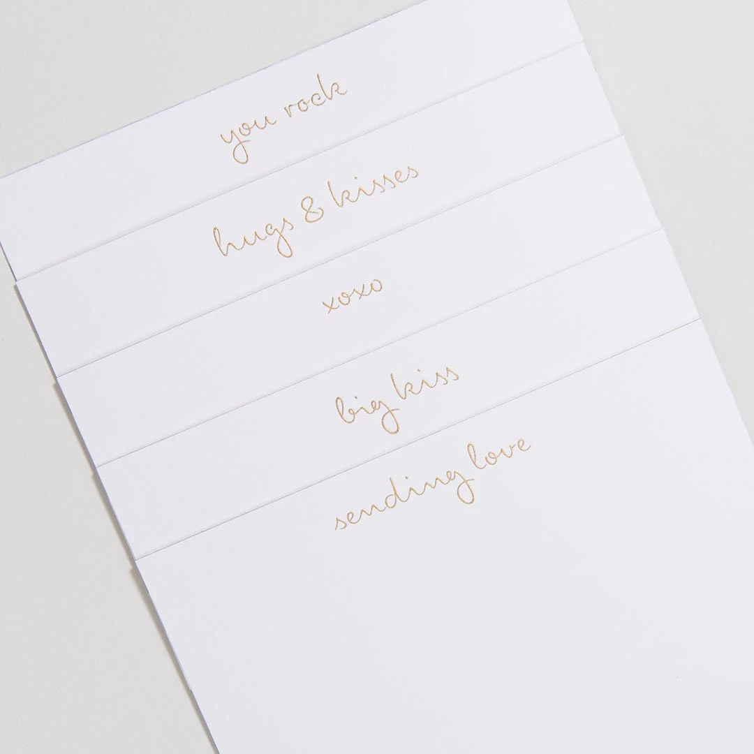 - Two of each phrase in every set: Hugs & Kisses, XOXO, Sending Love, Big Kiss, You Rock