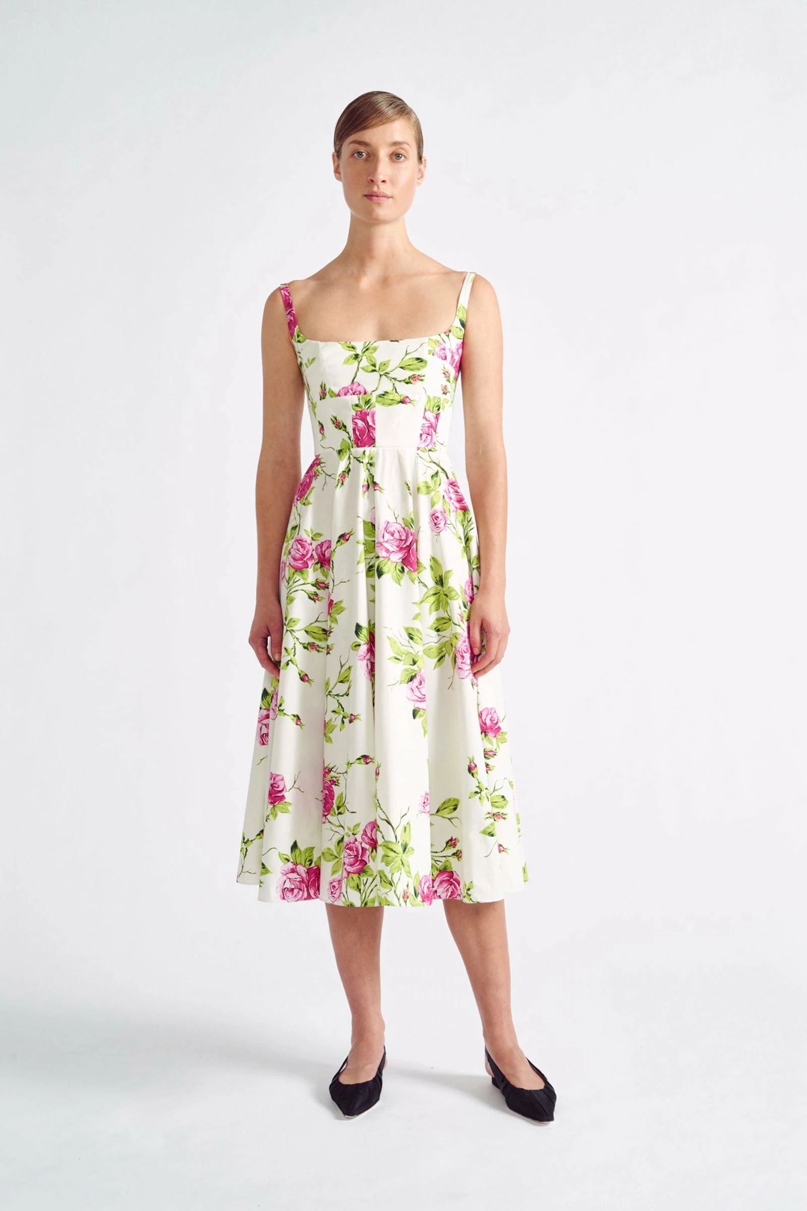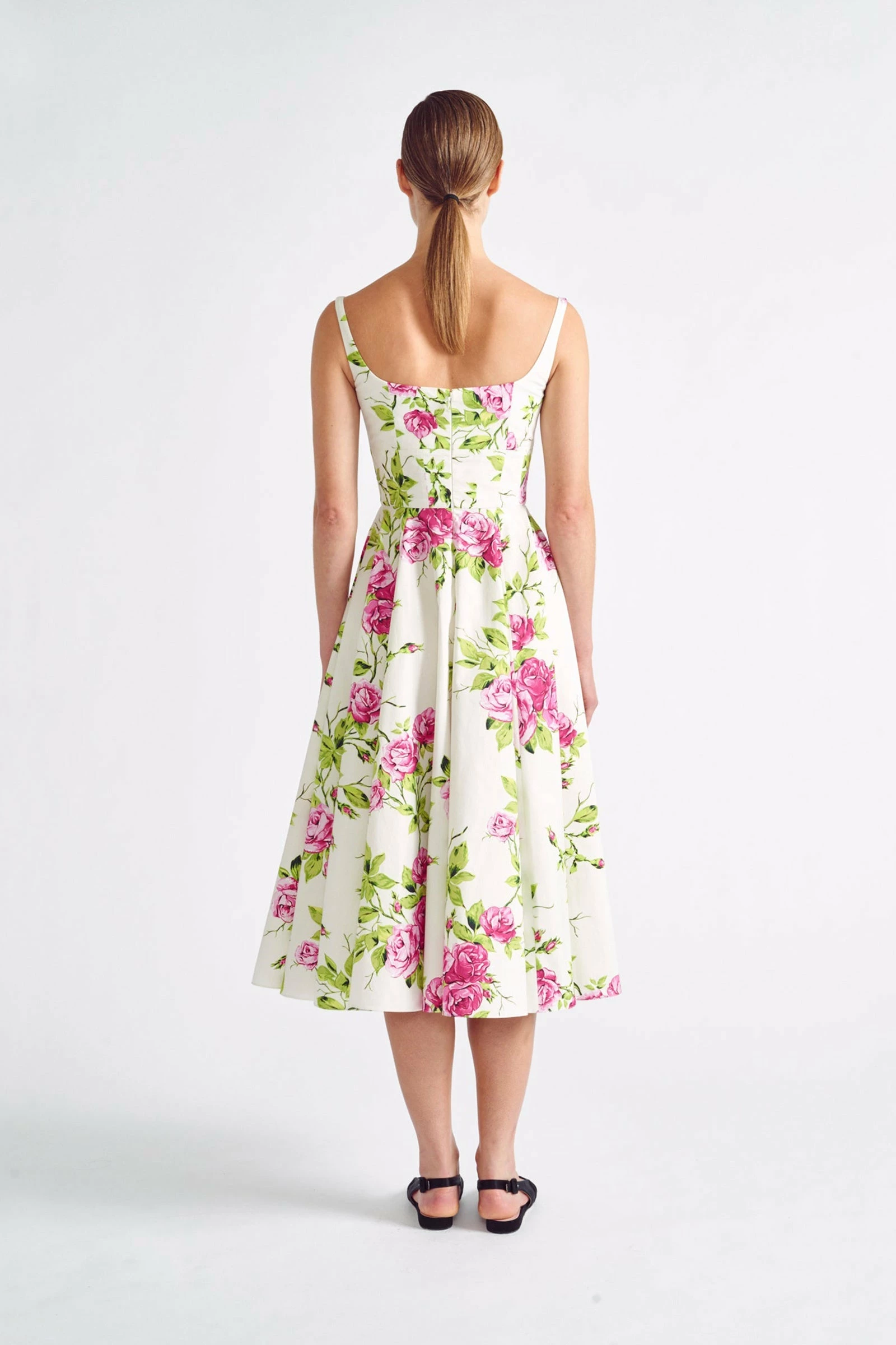 The Mona features a lightweight cotton poplin with a wide-set square neckline. Fitted through the bodice, this dress flares out at the waist creating a flattering silhouette.