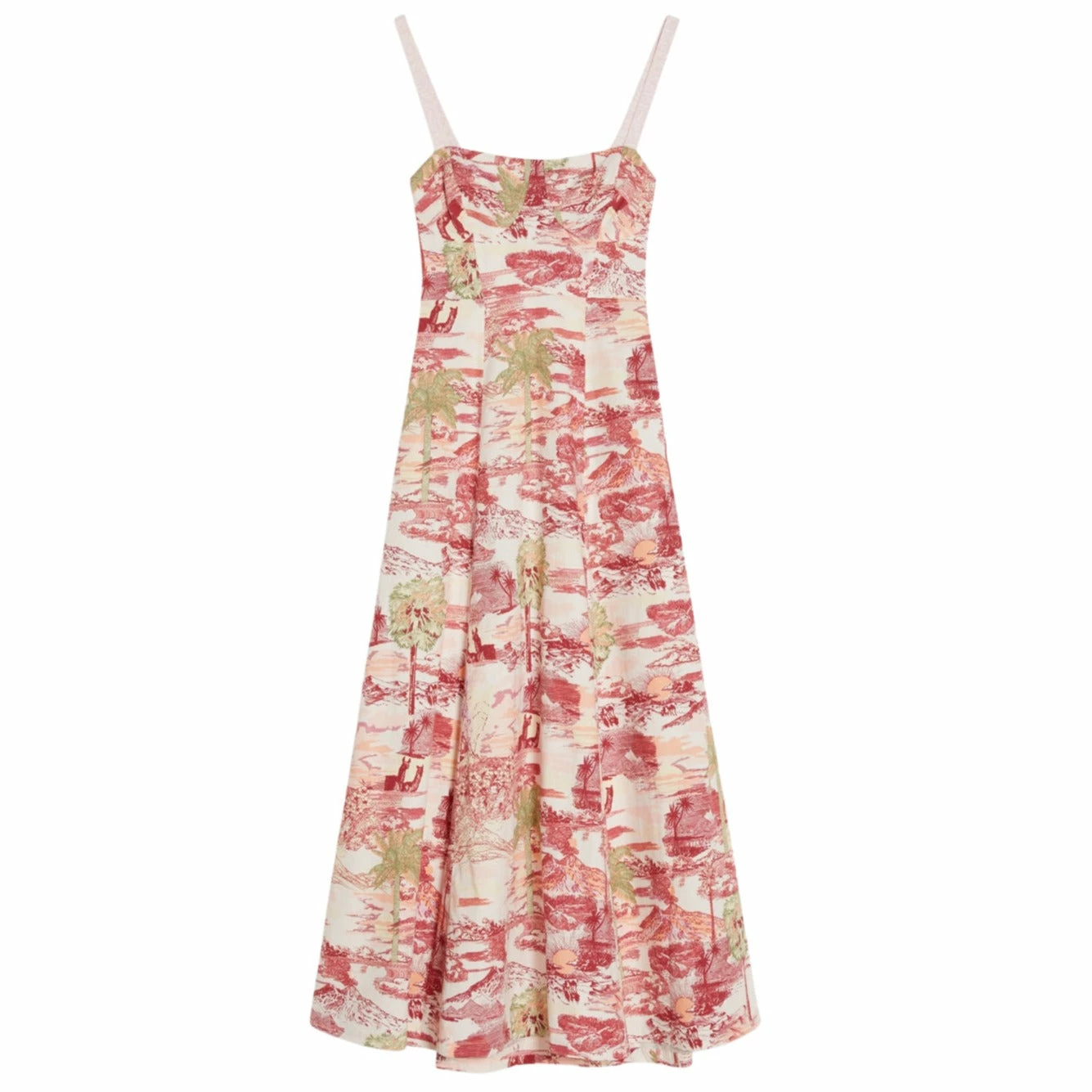 The Azzurra dress is a mid-length cut that highlights the waist while the top is characterized by a sweetheart neckline with an open back.