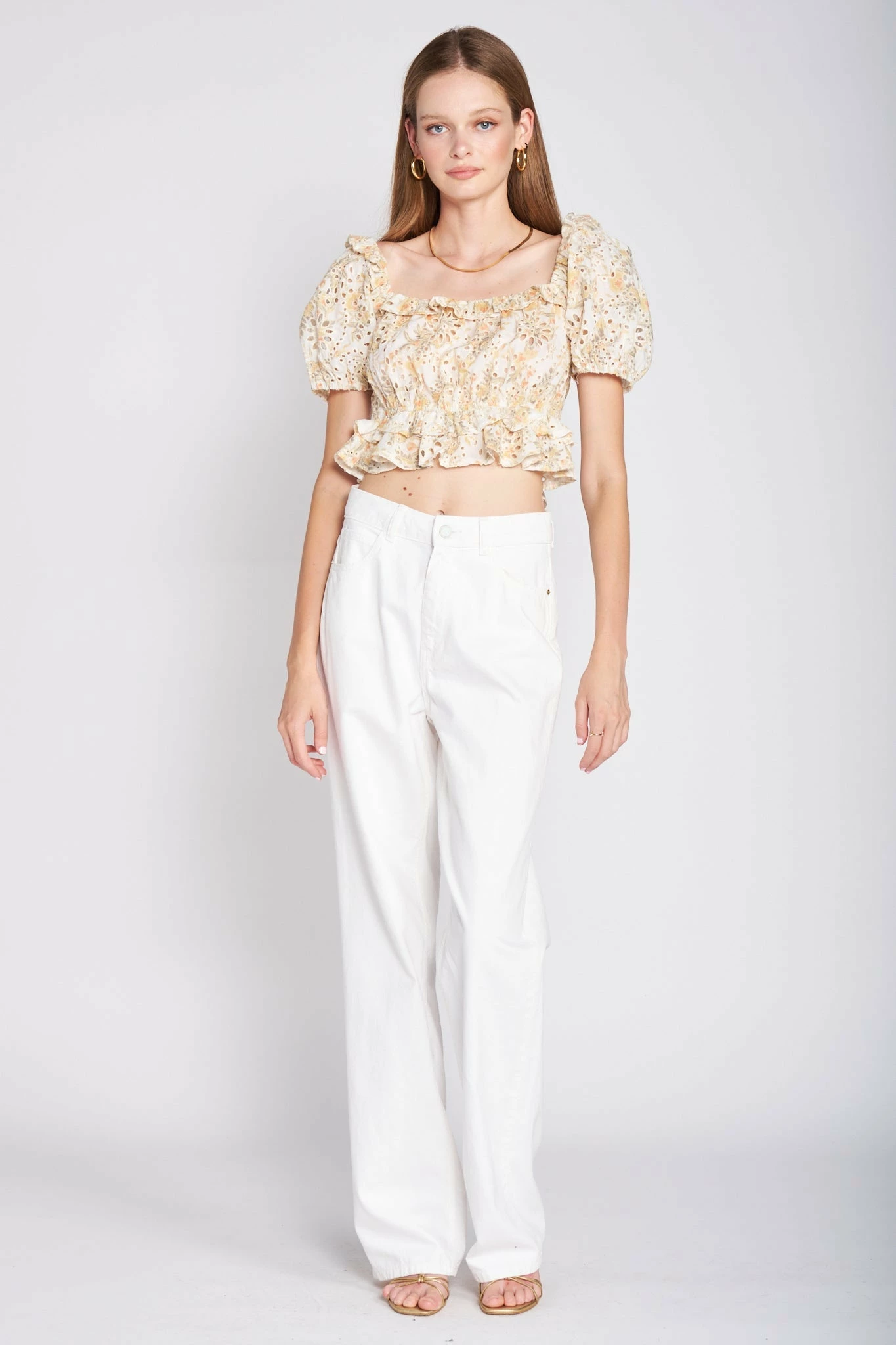 - Floral Eyelet Cropped Blouse