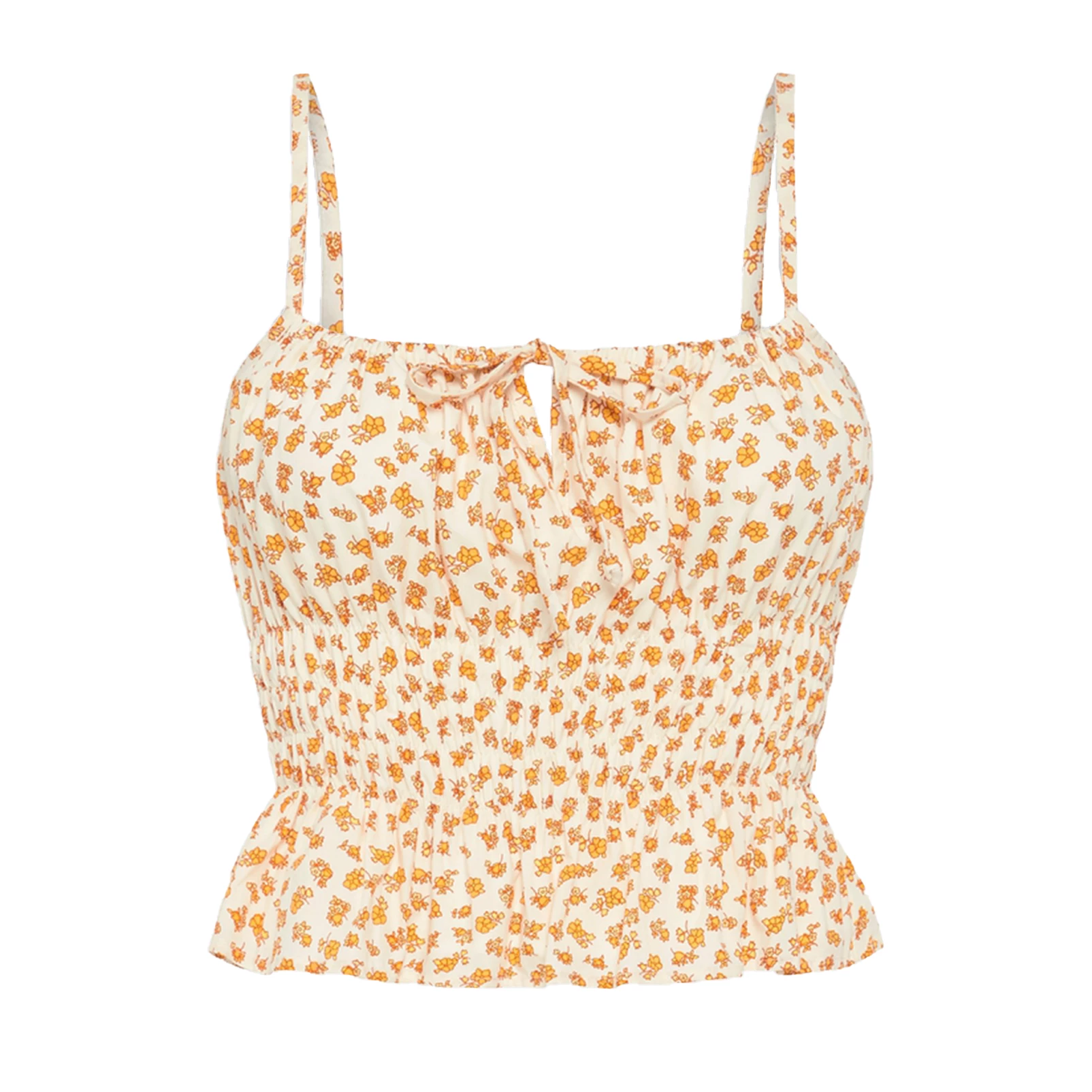 The Odelina top features a scoop neckline, adjustable over shoulder straps and elasticated waist for ease of fit, finished with a feminine peplum frill on the waist.