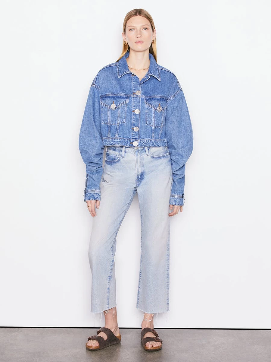 Le Jane Fit, In a flattering, on-trend crop length with a raw-edge hem. This Ultra-High-Rise jean is fitted through the hips, slightly relaxed at the thighs, and straight through the legs for a nostalgic look. It’s made from rigid biodegradable denim that breaks in beautifully.