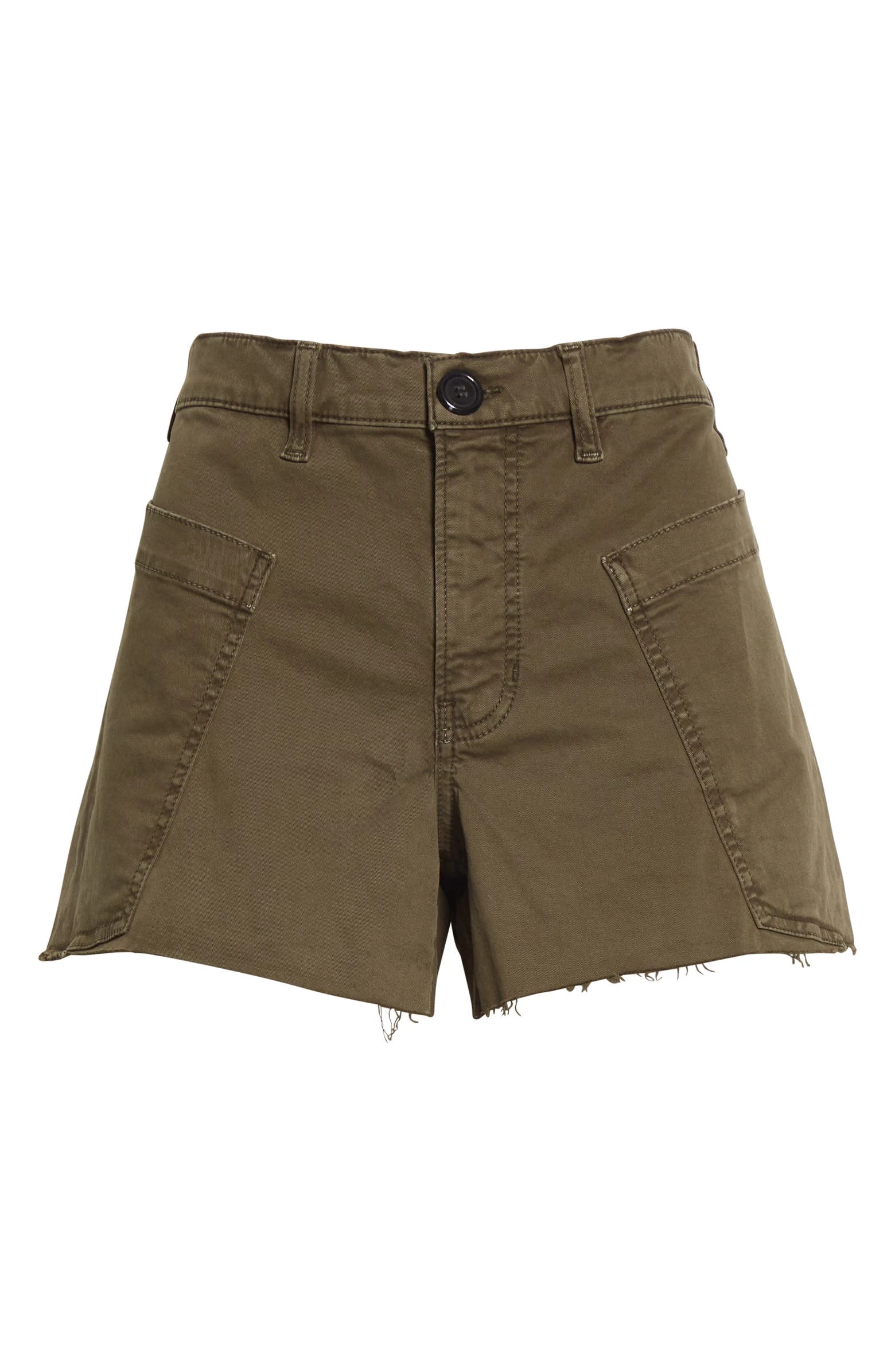 A short perfect for all summer activities. These feature a raw-hem in a military-inspired hue, completed with a pair of oversized pockets.