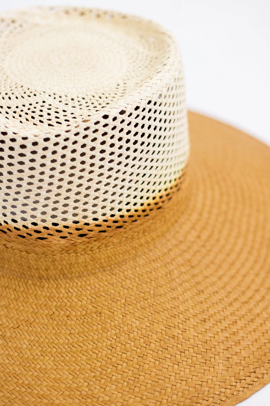 Styling yourself from head to toe takes on a new meaning when donning Freya fashions. The creamy white colored straw coupled with the camel brim makes this panama hat extra striking and easy to pair with anything and everything in your wardrobe. We’re pairing it with flare denim and tropical tops for beach vacations and a tie-dye dress for a summer mountainside getaway. Each design is handwoven in Ecuador from local, indigenous palms, giving each its own natural beauty.