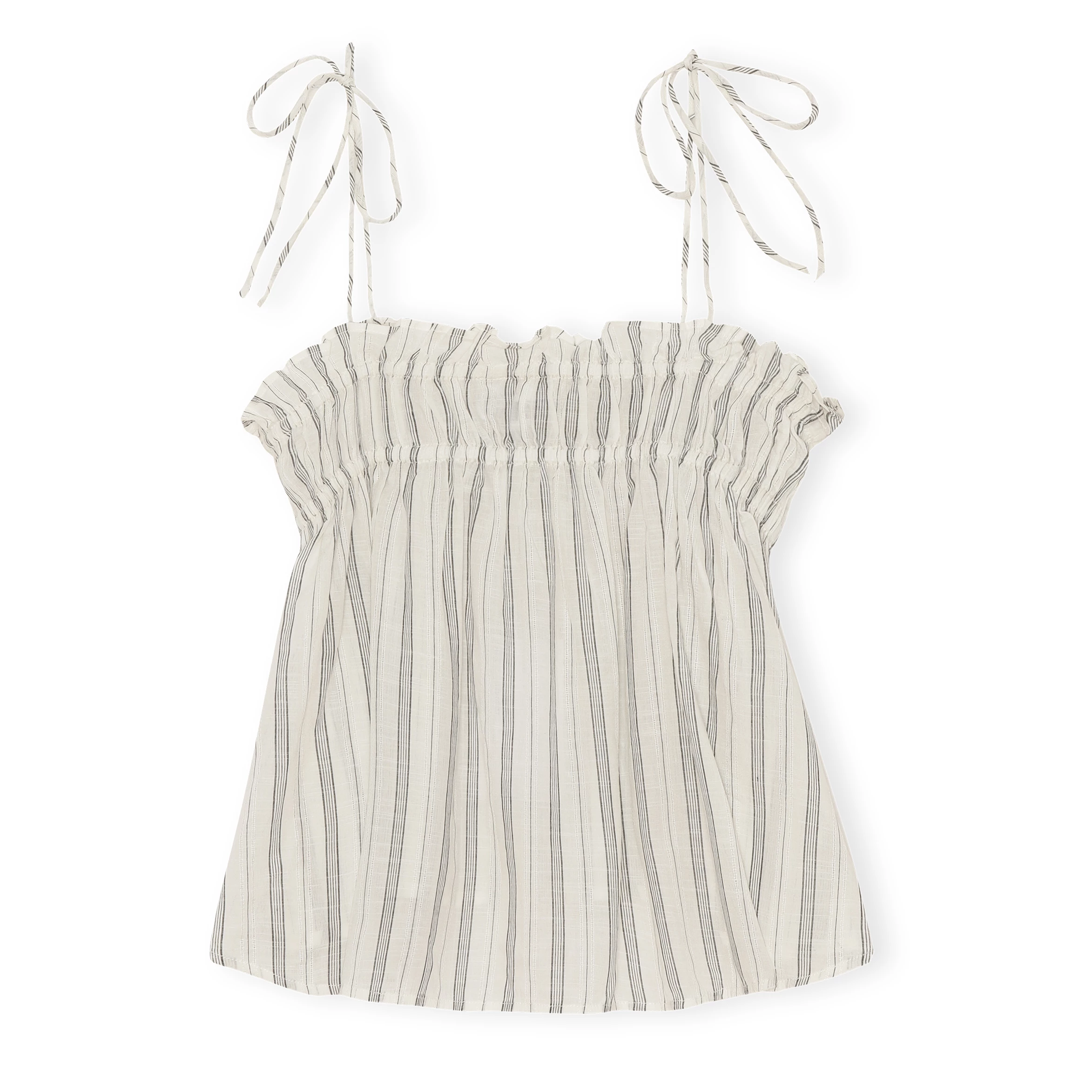 This striped top features a babydoll silhouette with a square neck and adjustable tie straps.