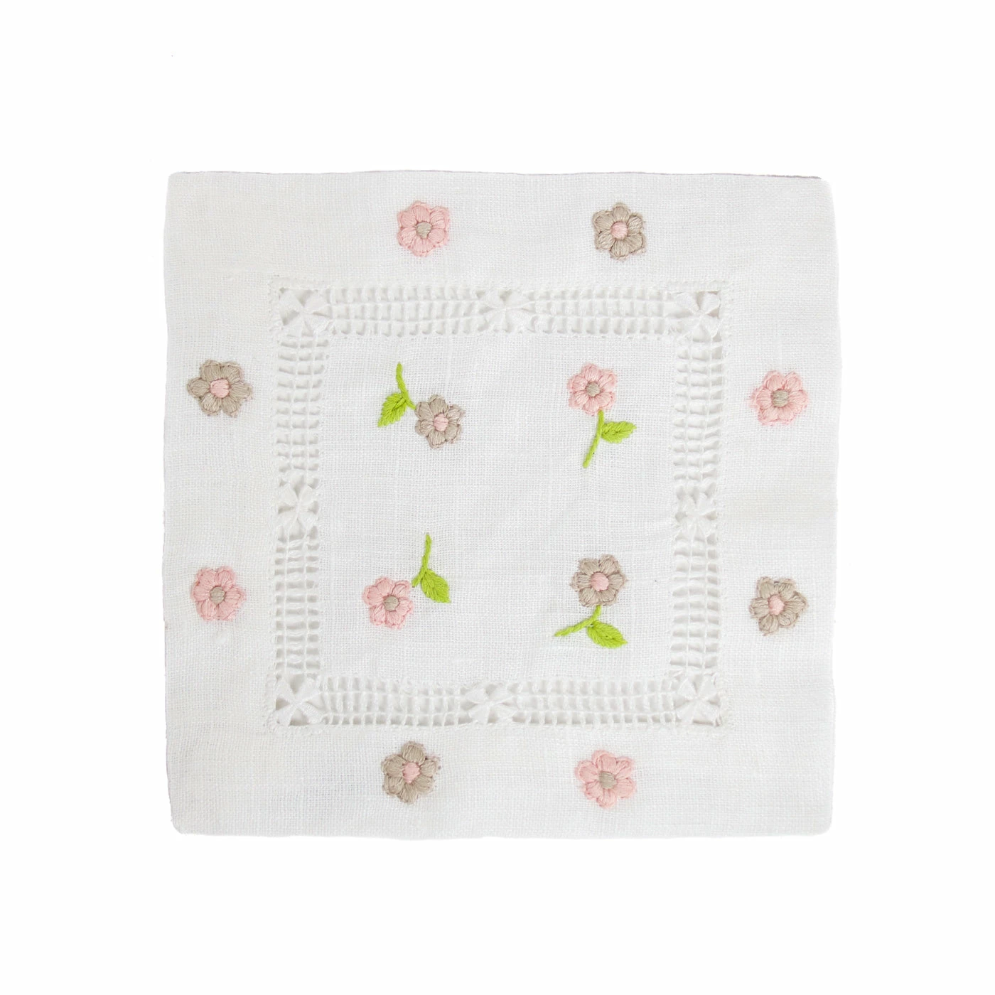 - Hand embroidered