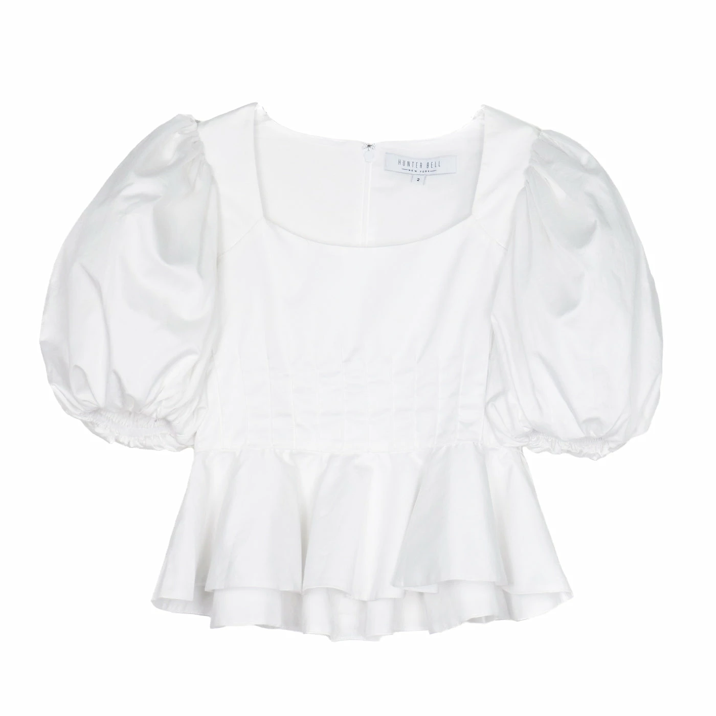 The Camille top helps make any outfit your most-loved look. This puff sleeve and peplum number is sure to be your favorite statement piece of the holiday season and beyond.