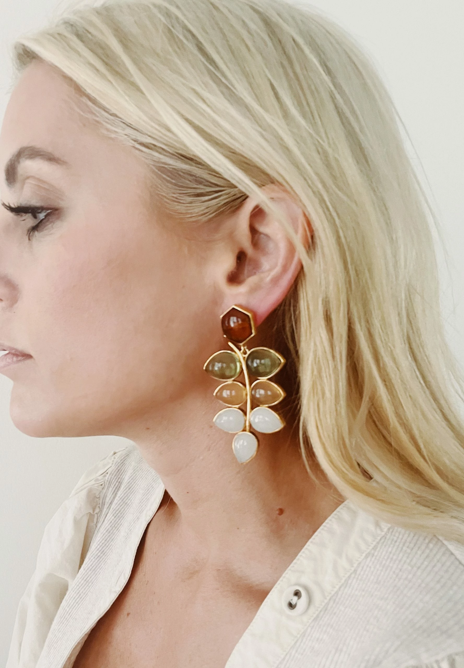 - Leaf shape + neutral gemstones