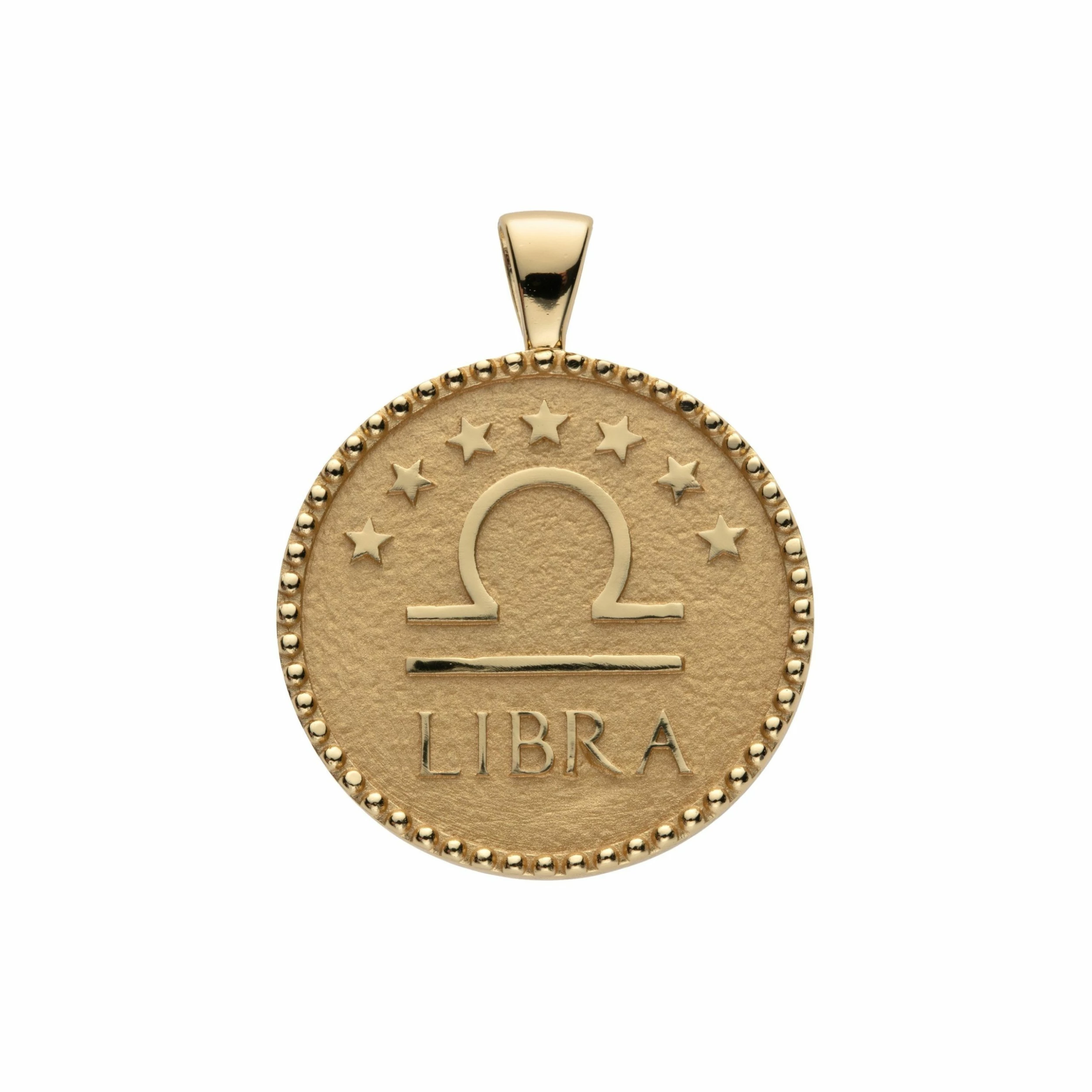 - Coin pendant made of sterling silver dipped in 14k gold, measuring 1.2” in diameter.