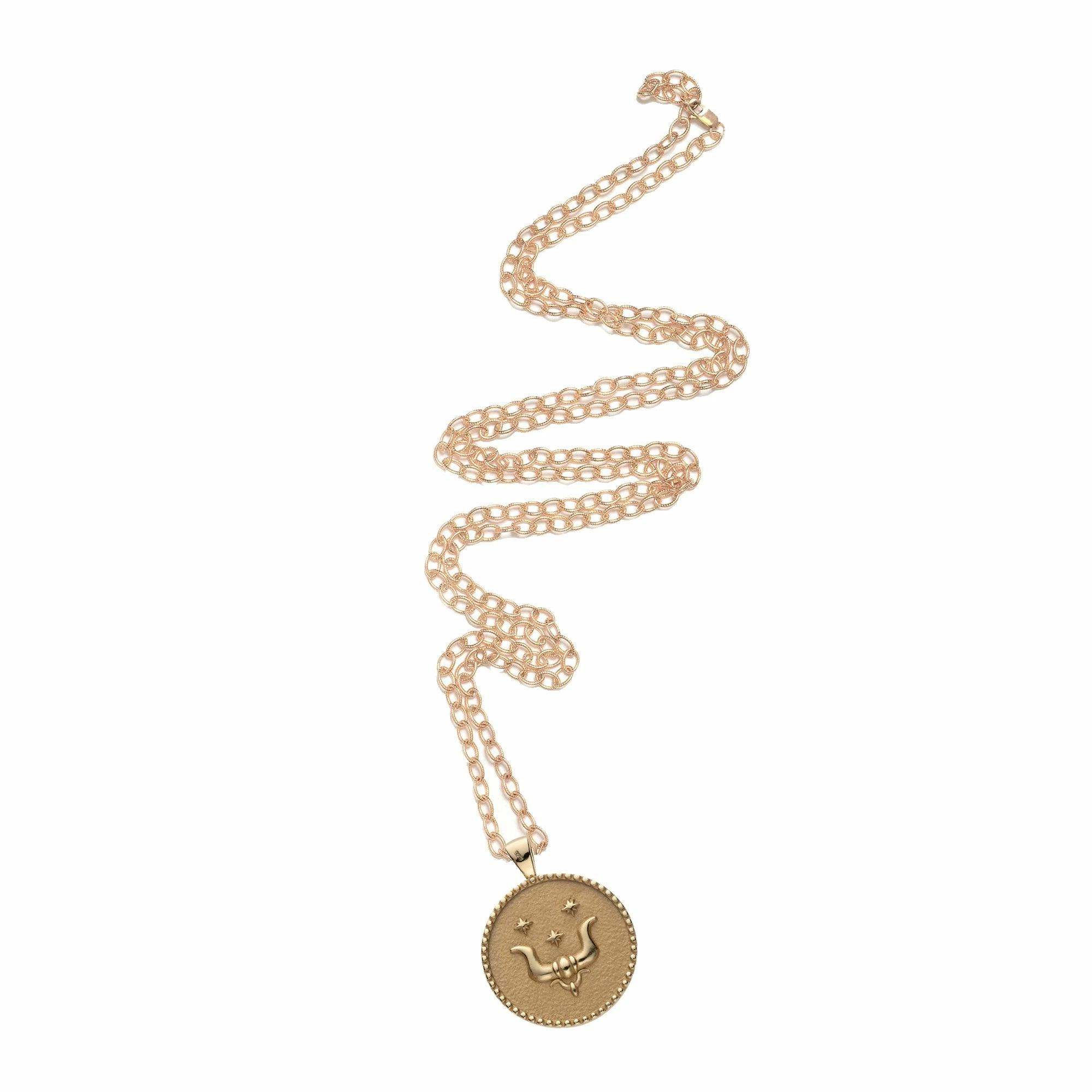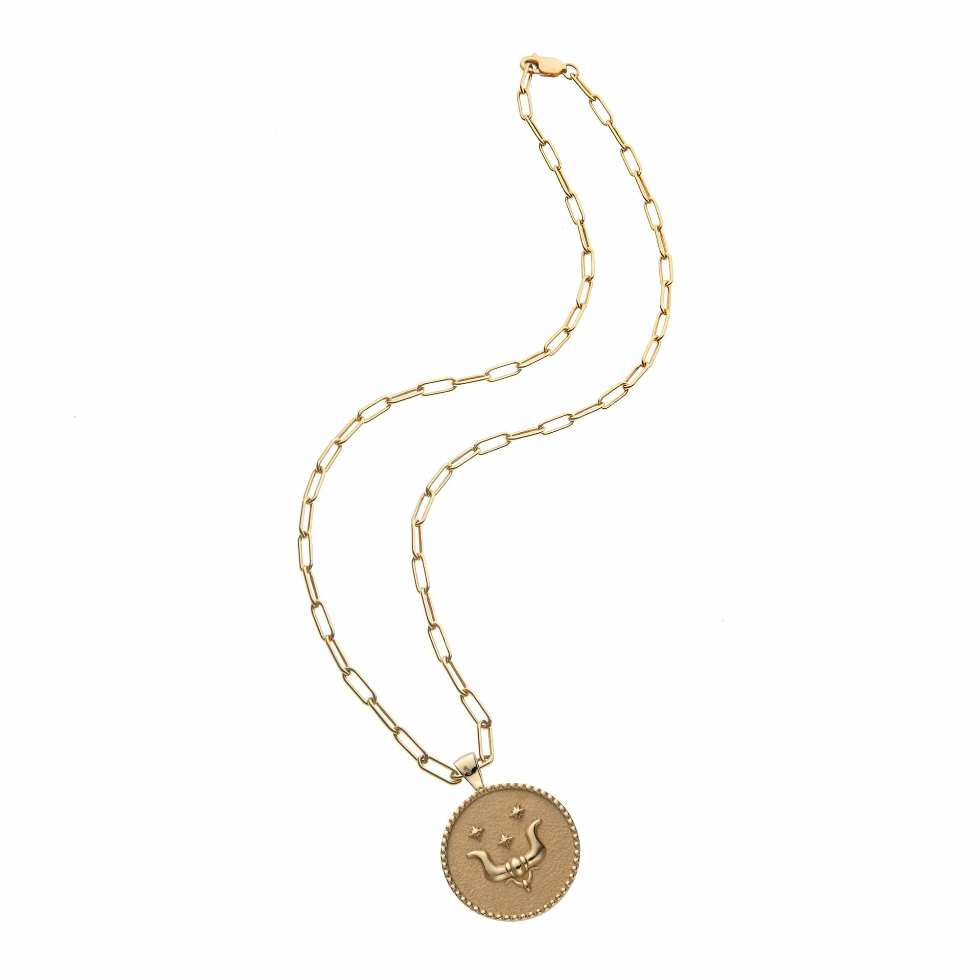 - Coin pendant made of sterling silver dipped in 14k gold, measuring 1.2” in diameter.