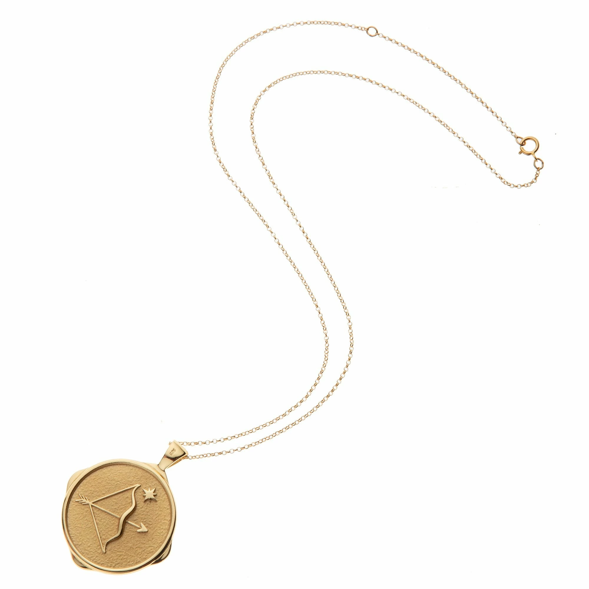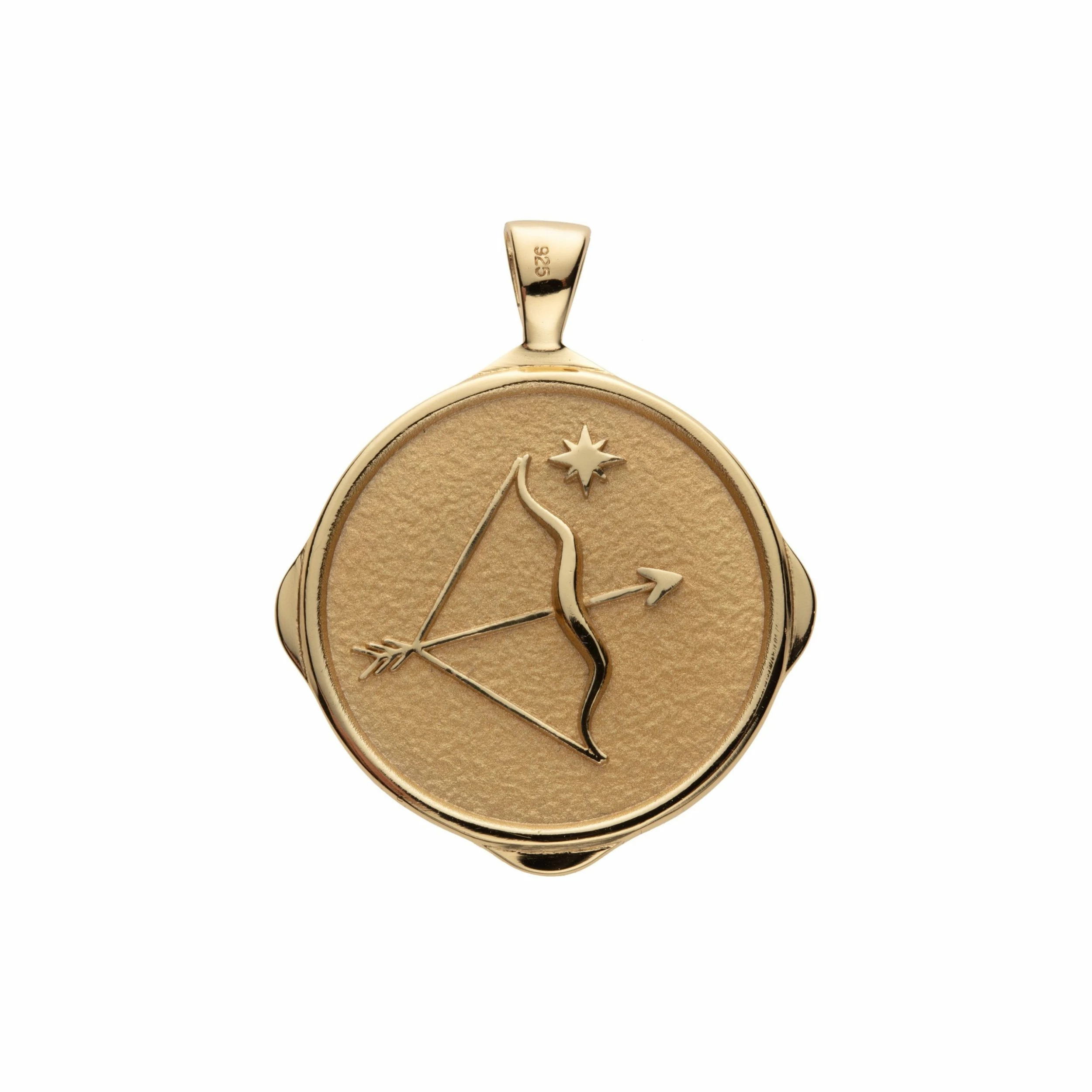 - Coin pendant made of sterling silver dipped in 14k gold, measuring 1.2” in diameter.