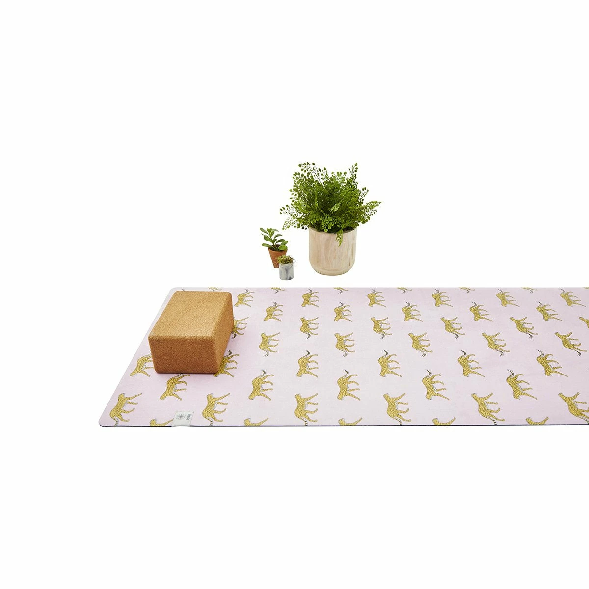 A fun and functional addition for your at-home workout space that’s easy to pack for group classes, too. Jollie’s plush mat designs are printed on a microsuede top bonded to a non-Amazon harvested rubber bottom. The process is free of glue and other harsh adhesives, making mats safe for everyday use by the whole family. Microsuede is ideal for sweaty activities like hot yoga or cuddly activities like storytime with the kiddos.
