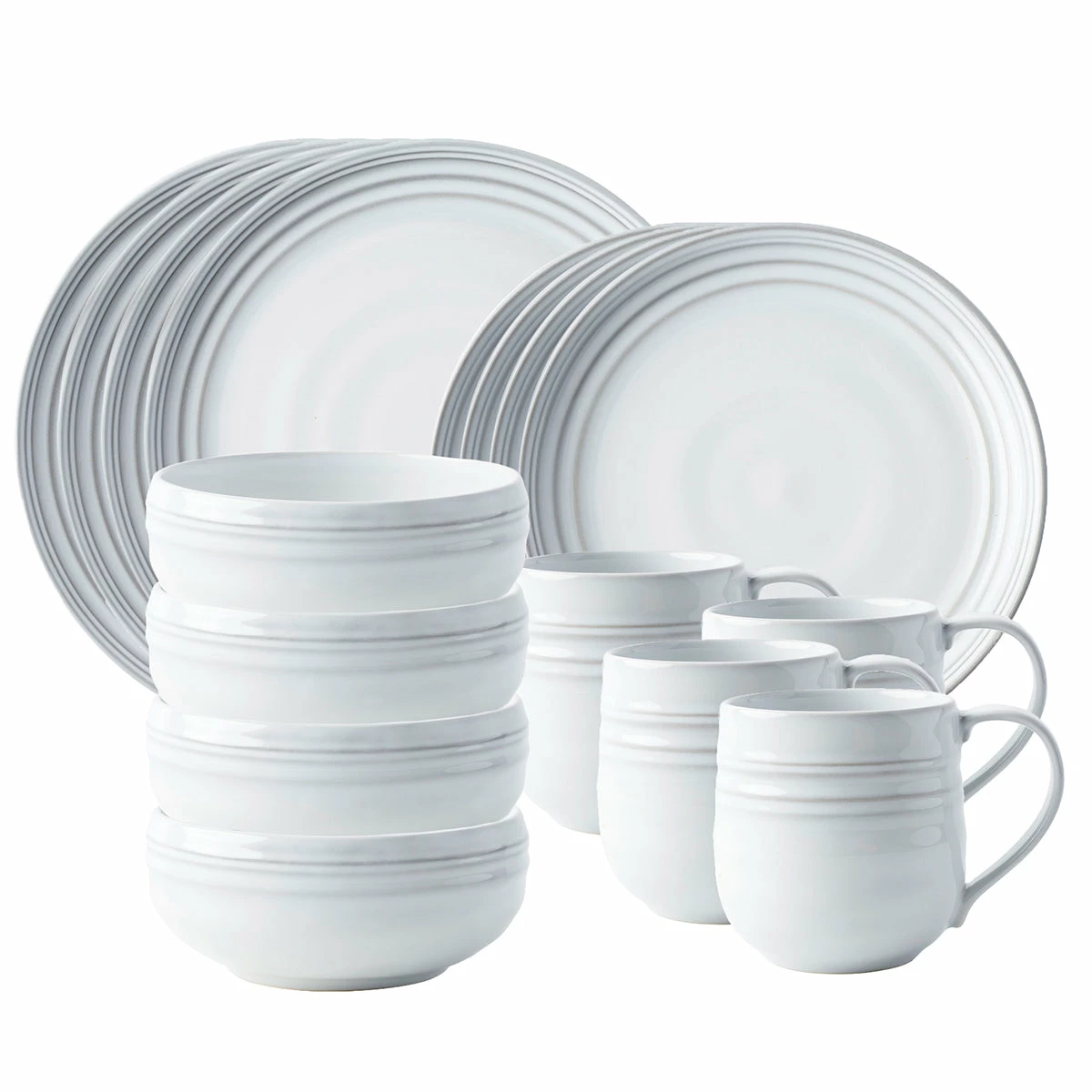 From our Bilbao Collection- Inspired by the beauty of the Basque country and the city of Bilbao, we created this collection with a mix of old and new in mind. This 16 piece set provides service for four and includes 4 dinner plates, dessert/salad plates, cereal/ice cream bowls and mugs.