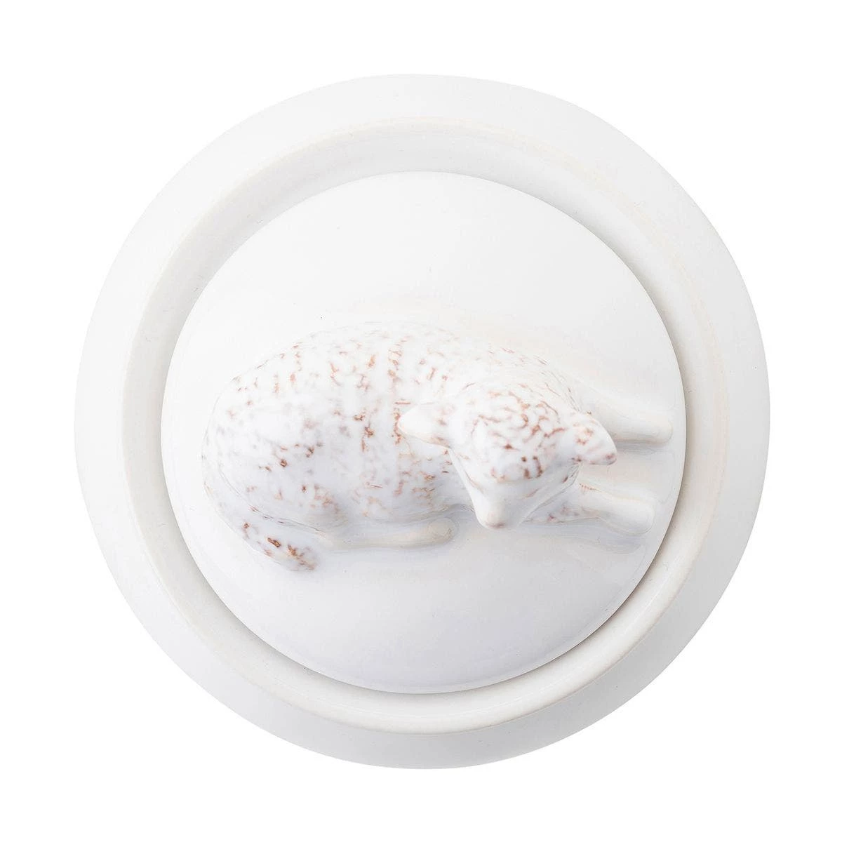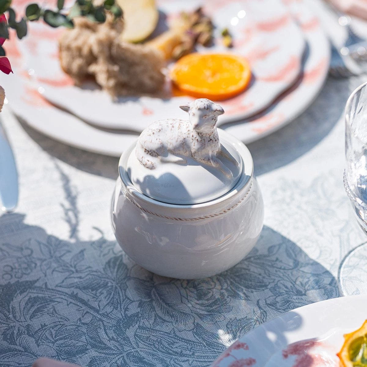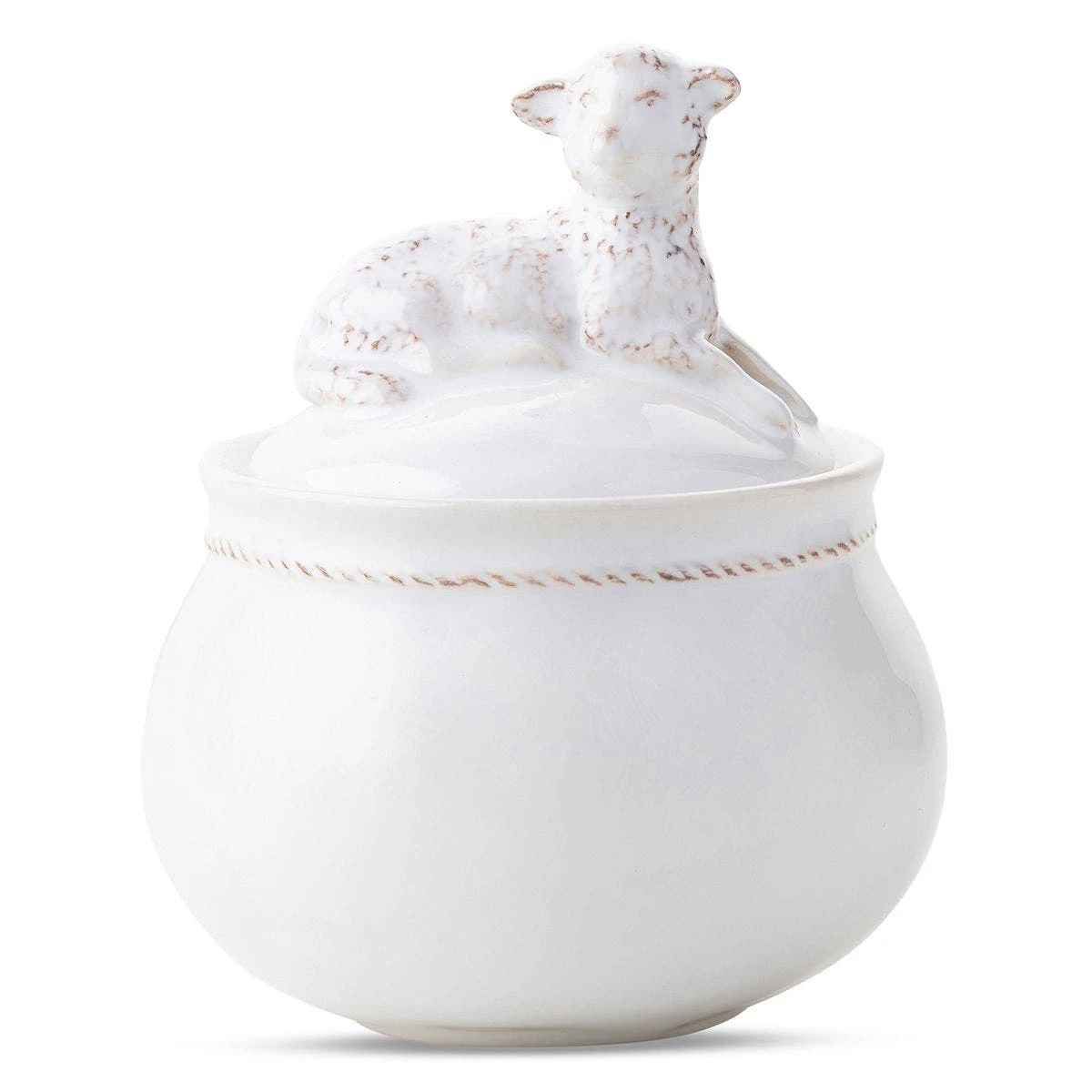 From our new Clever Creatures collection – this sugar jar, adorned with a little lamb laying atop the lid, is sure to bring a smile to your face every time you go to add a spoonful of sugar to your morning coffee.