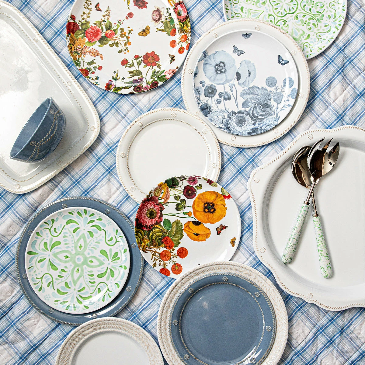 The flower power of our ebullient botanical blooms is softened into this dreamy painted palette of chambray blue. Deftly serving up mood, romance, and practicality – all in one charming plate that you’ll adore for appetizers, sweets, and sides.Gift wrapping is not available for this item.