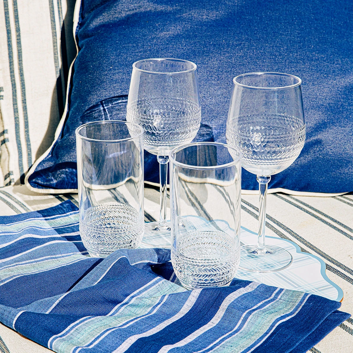 From our Al Fresco Collection – A study in contrasts, our Old World motif of French basket weaving is classic, yet blithely effortless, in modern acrylic. Sized for everything from sparkling kombucha to a Dark ’n Stormy, this versatile vessel allows adventurous entertainers to carpe diem and set a gorgeous scene, absolutely anywhere.