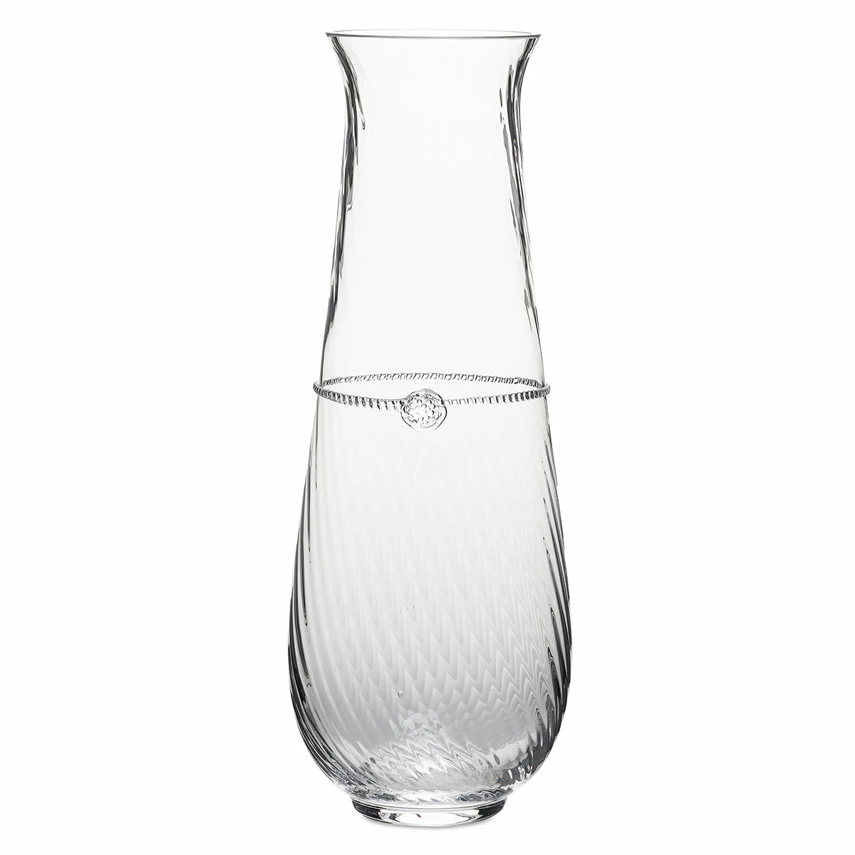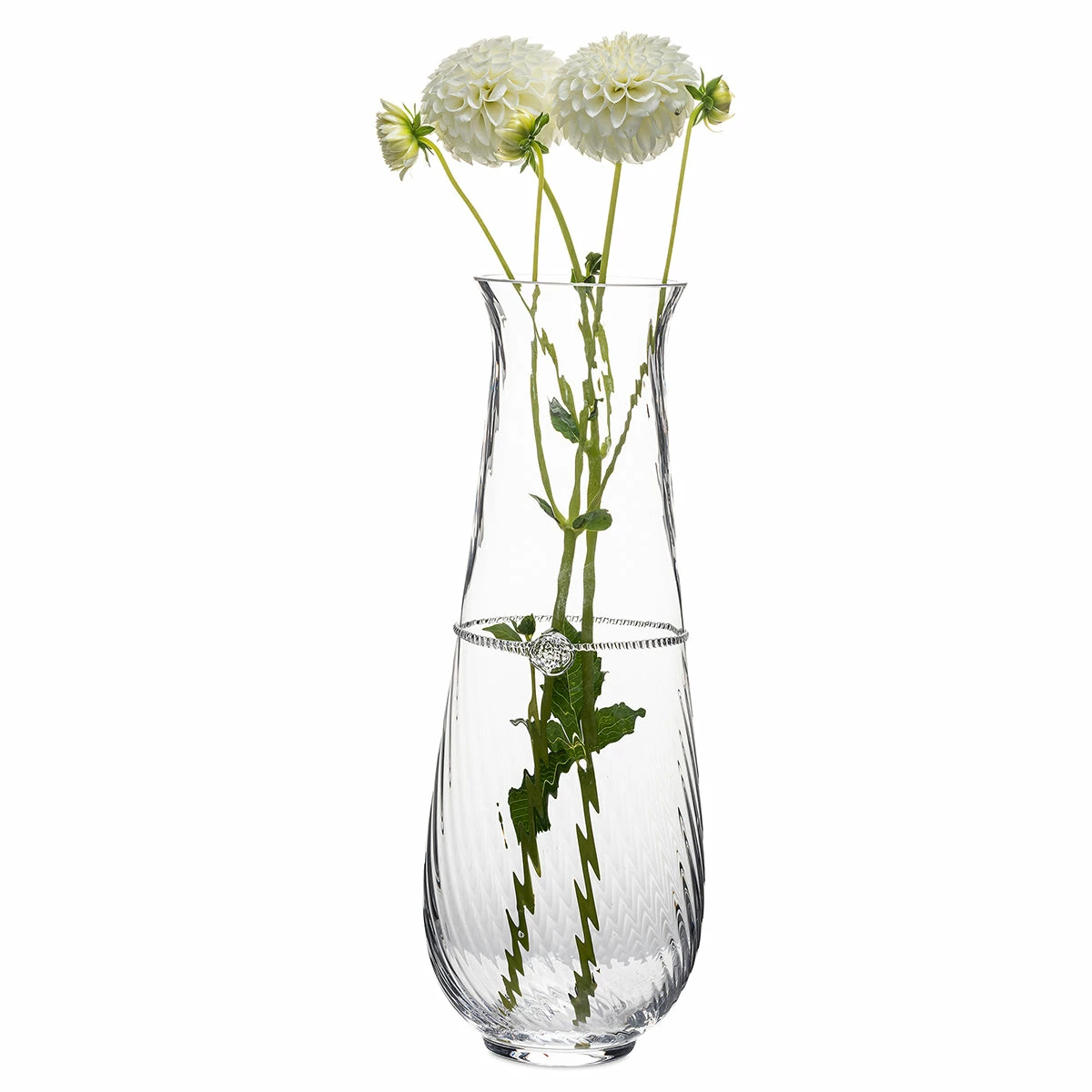 From our Graham Collection – A few languid stems of your most perfect blooms will compliment the diaphanous beauty of this graceful vase that boasts a cascade of optic glass, with a pattern on the bias, atop an elegant foot. This classic shape is a perfect for statement bouquets.