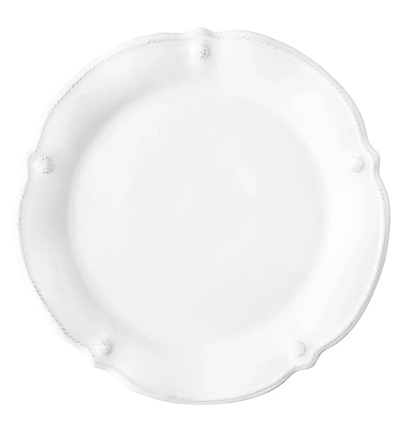 The fluted silhouette of this flared dinner plate has a playful and feminine shape. Adorned with a sprinkling of our signature berries, this dinner plate has ample space to showcase all of your culinary creations.