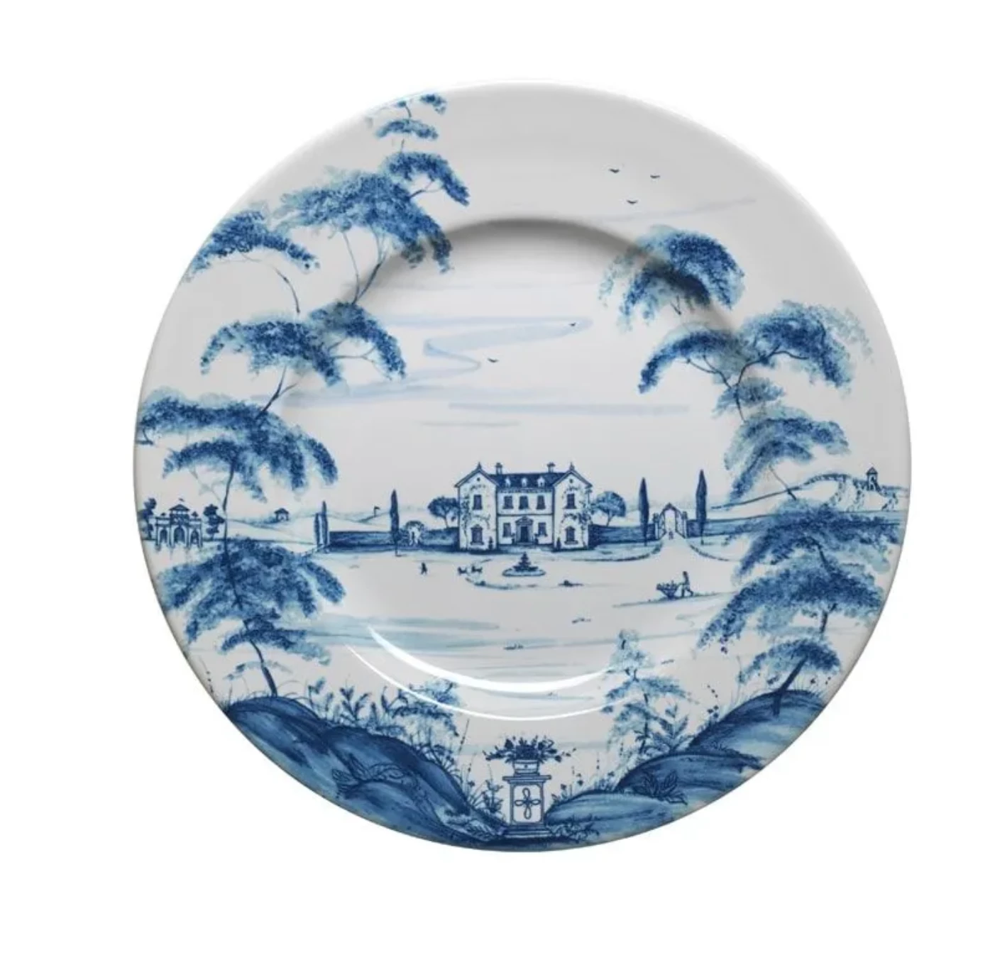 From our Country Estate Collection- Welcome to the main house, where friends and family have gathered for generations and country food is raised to a point of fine art. A feast for the eyes and table, our stately dinner plate is a portrait of the inviting and bustling life you can explore on the estate and where you can always find something delectable bubbling away in the kitchen. Featuring: the Main House, Boathouse, and Apple Orchard