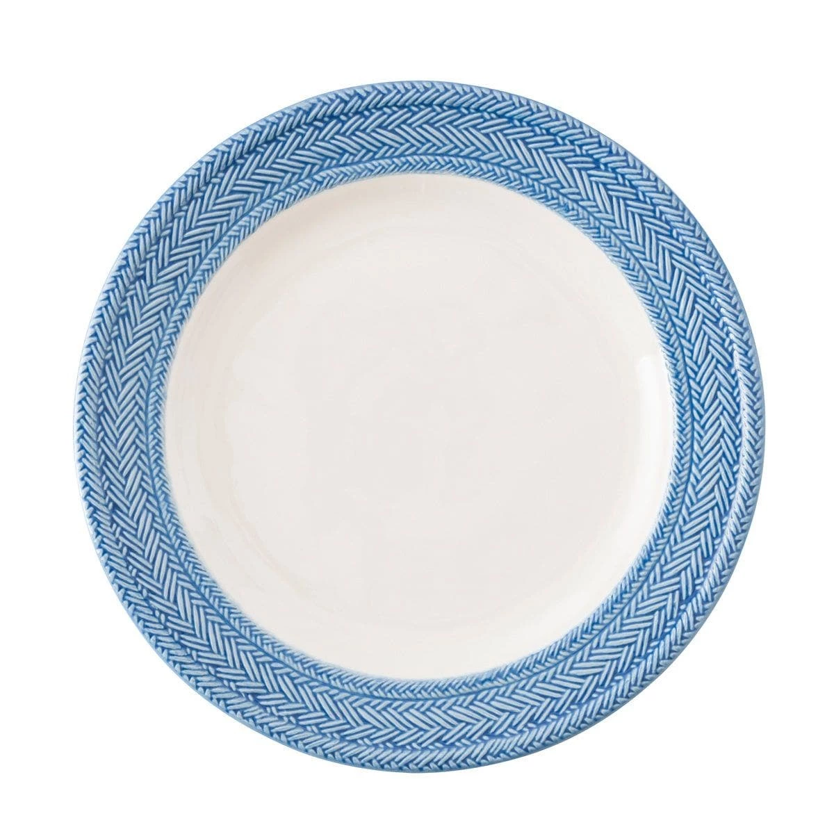 From our Le Panier Collection- Inspired by the French basket weave often found in equestrian and nautical traditions, the border is beautifully hand-painted in a windswept Delft Blue.