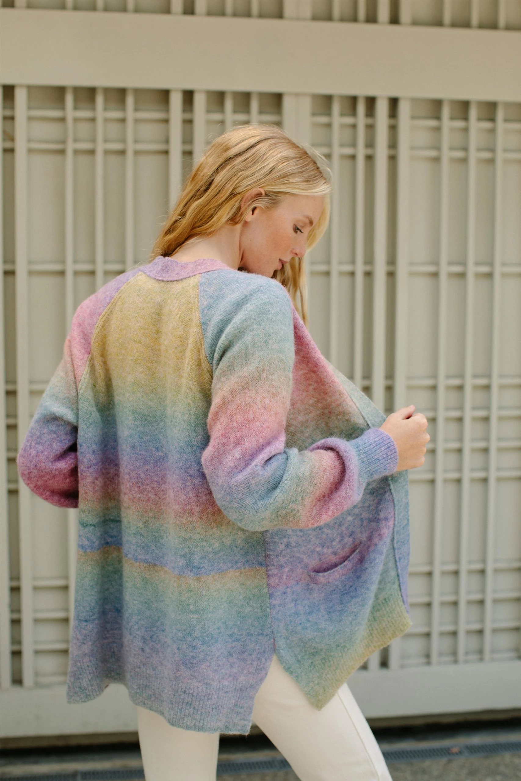 Plush, prismatic perfection in rainbow hues and perfect for fall. This oversized, open front cardigan can be paired with anything and everything, and will soon become your wardrobe MVP. 100% made in Italy.