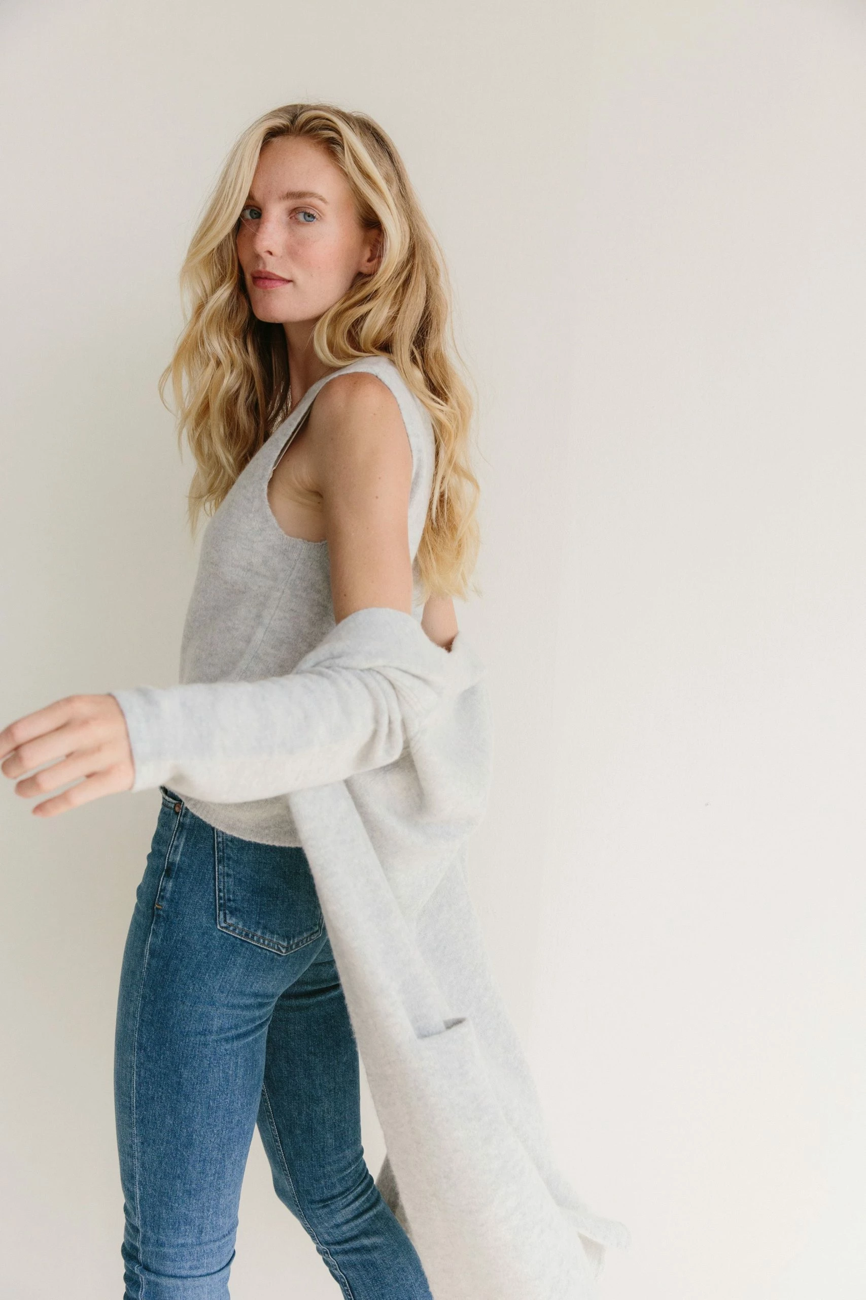 The little sister to the Hannah Duster. Same soft, lofty cashmere and luxe construction in an adorable tank. All with a little bit of stretch (but engineered never to stretch out). Wear it with the Duster or wear it on its own. Either way, we predict you’ll be wearing it a lot.