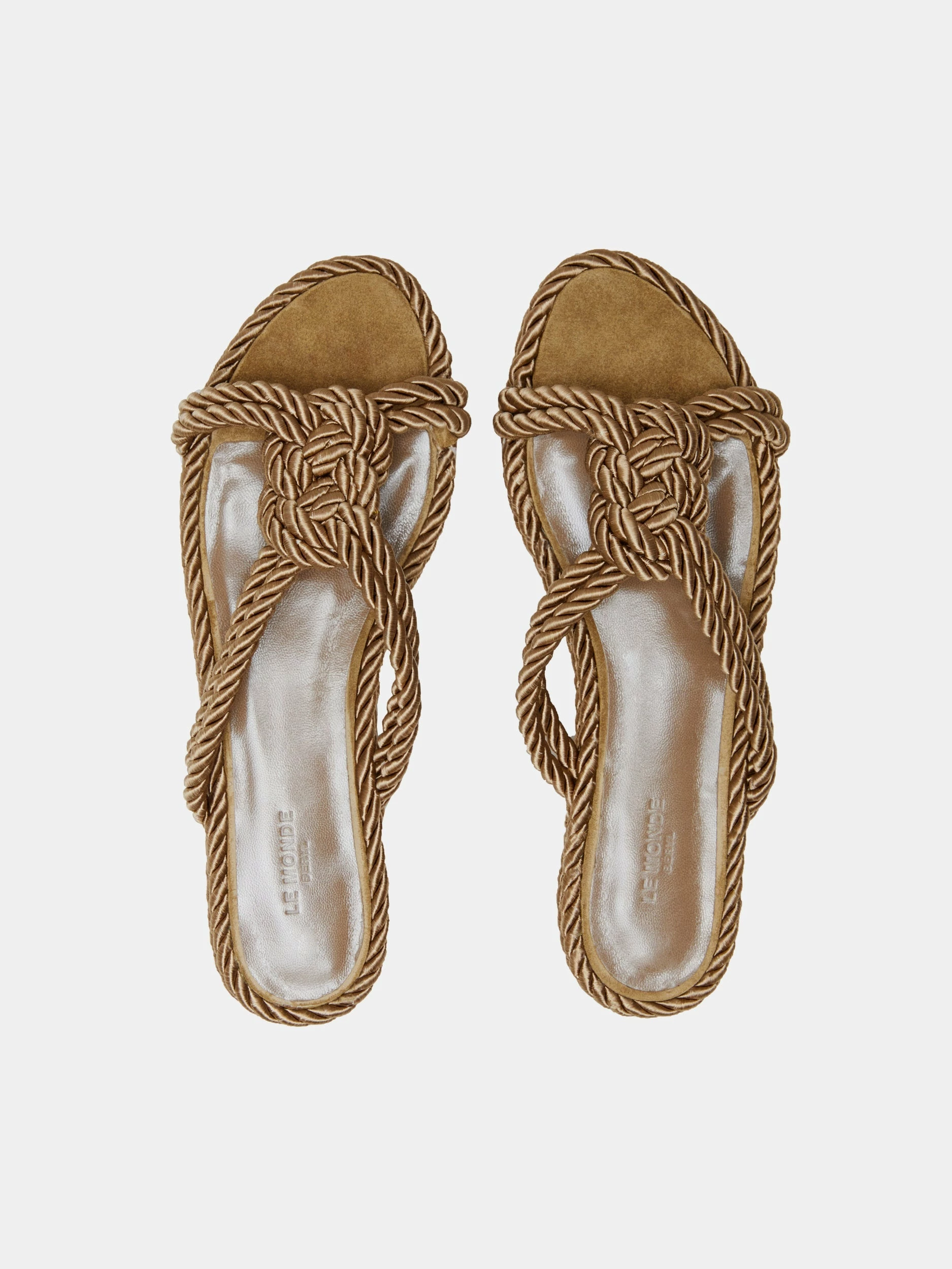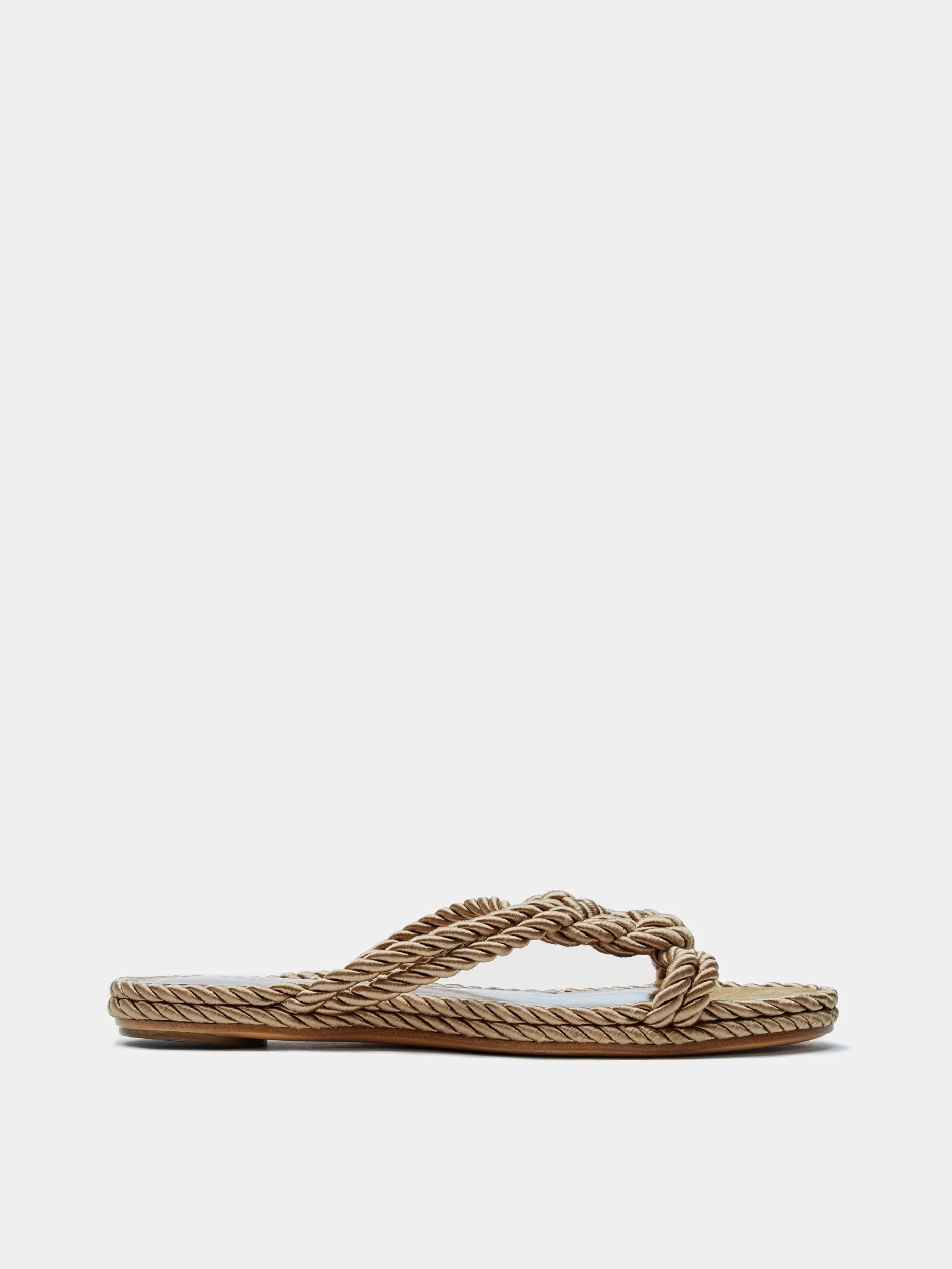 - Rope detail flat sandals in sand viscose and suede