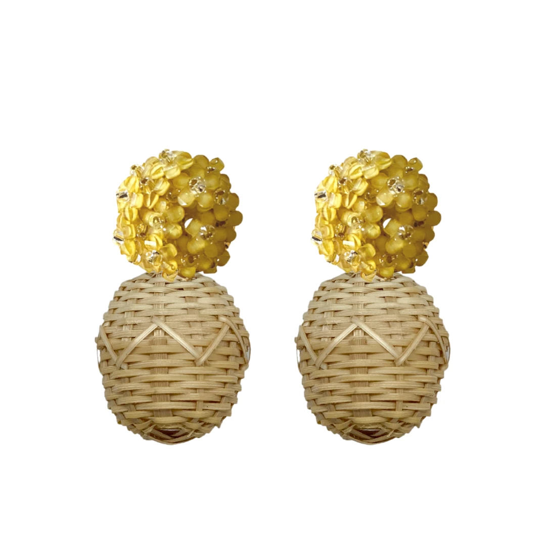 Delicate yellow flower cluster posts with woven rattan ball
